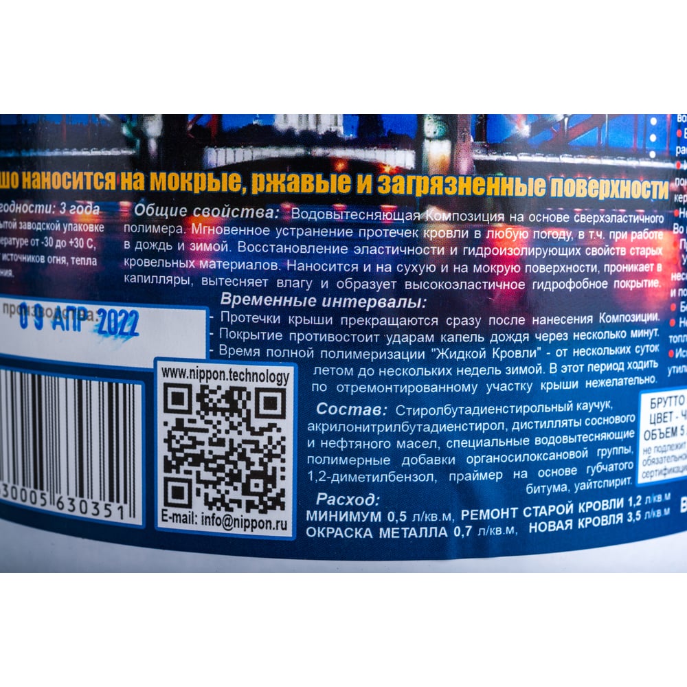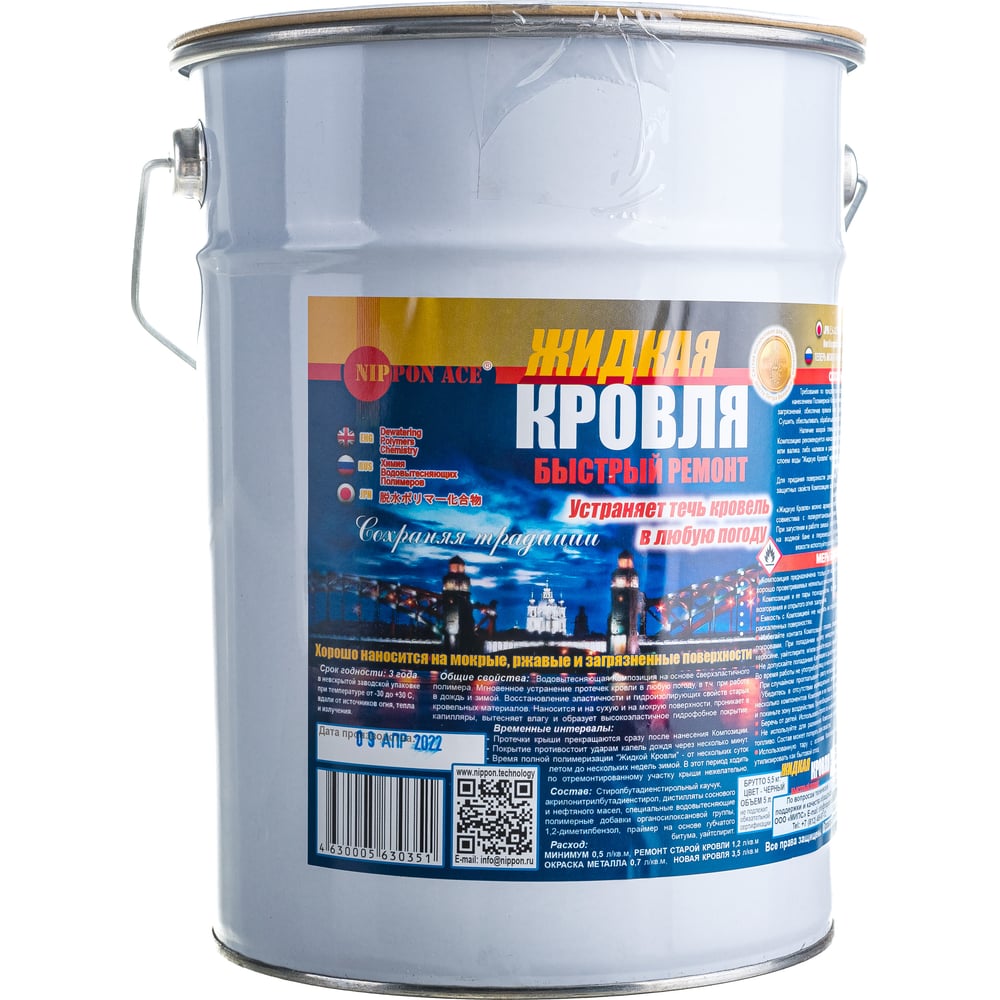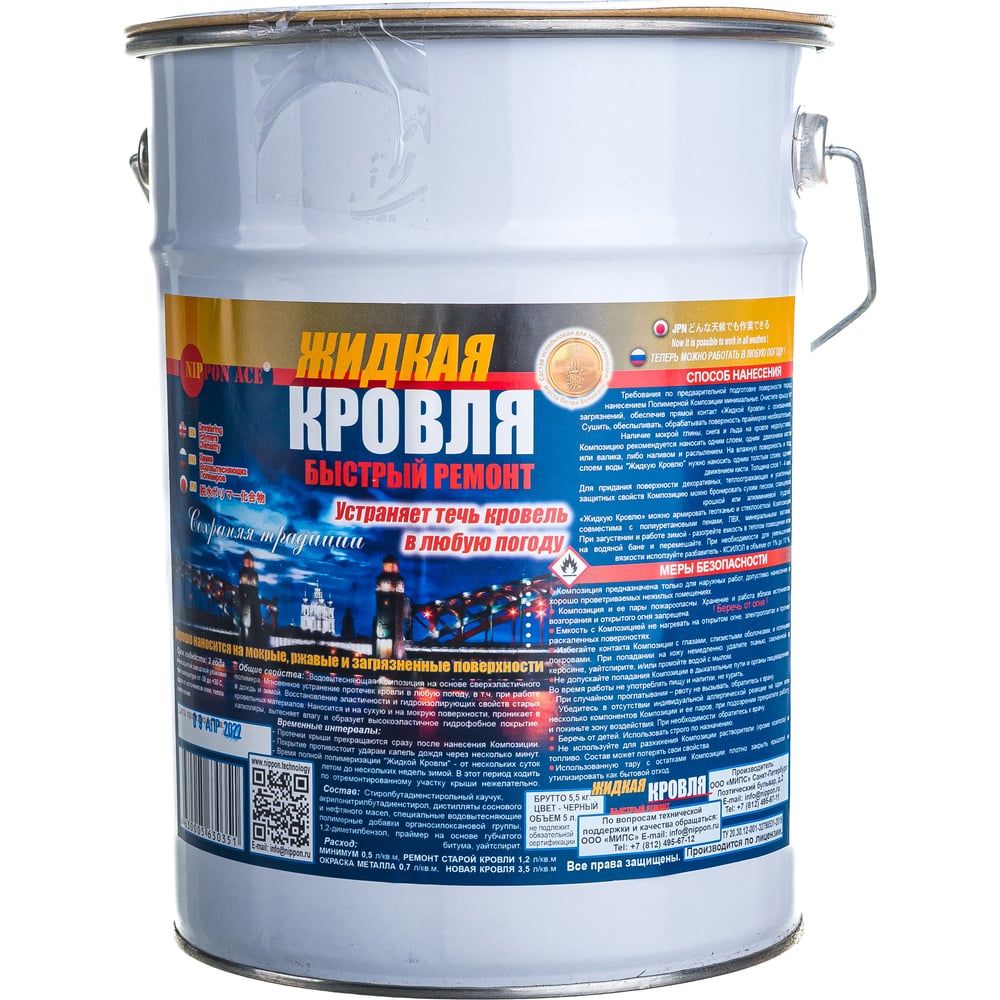 Водовытесняющая полимерная композиция Жидкая Кровля - быстрый ремонт Nippon Ace ведро 5 л 4630005630351 JK-050-351