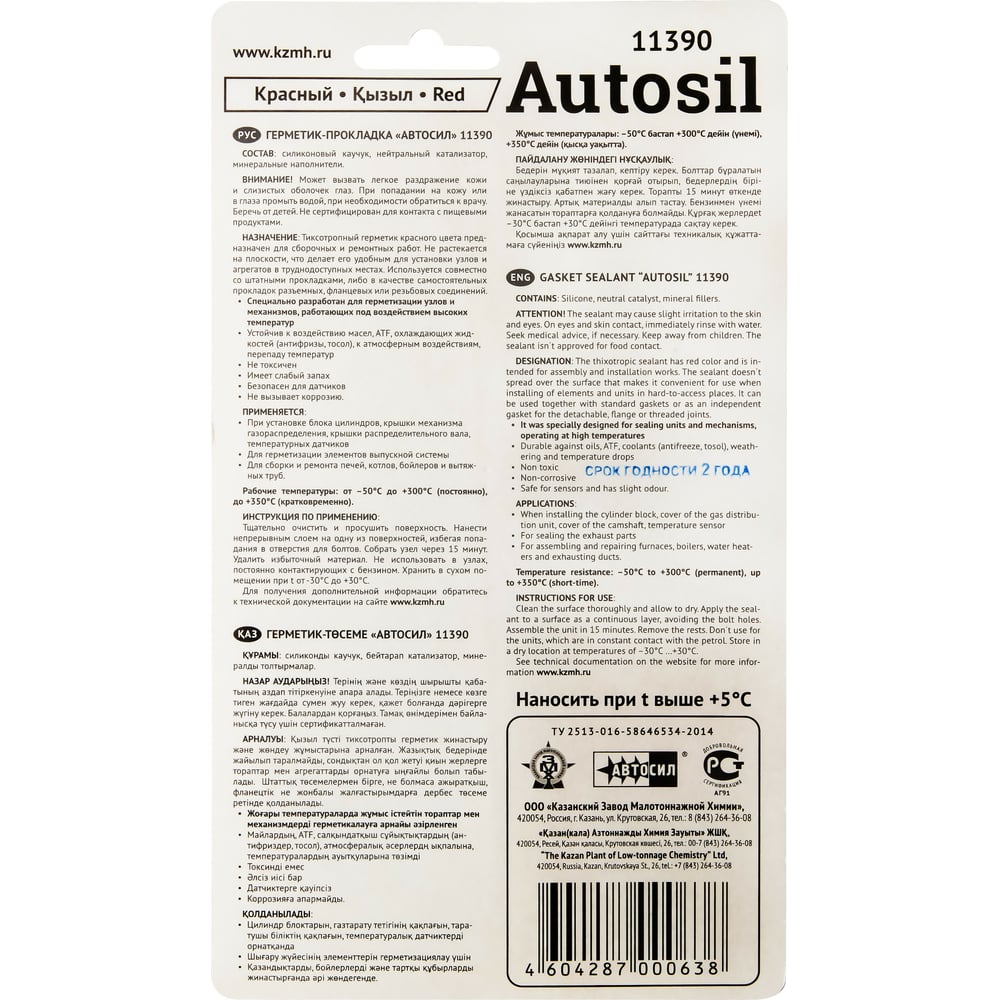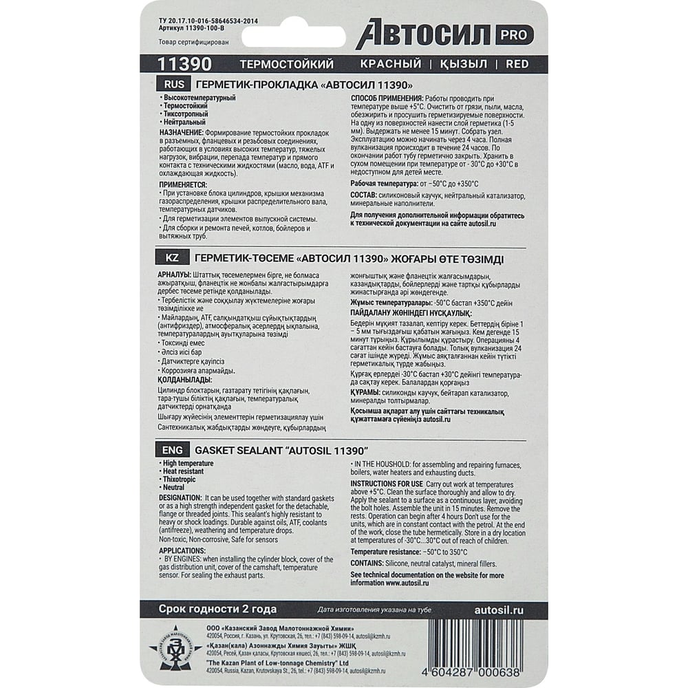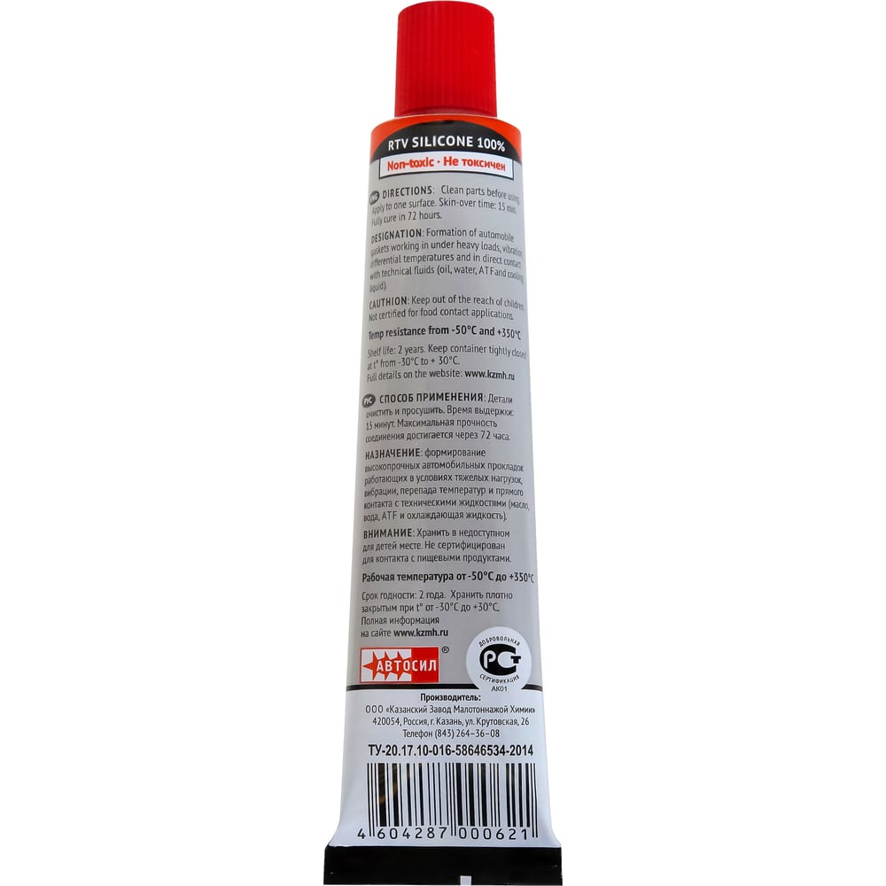Силиконовый термостойкий герметик-прокладка АВТОСИЛ 11390 (красный; 100 г) 11390-100-В