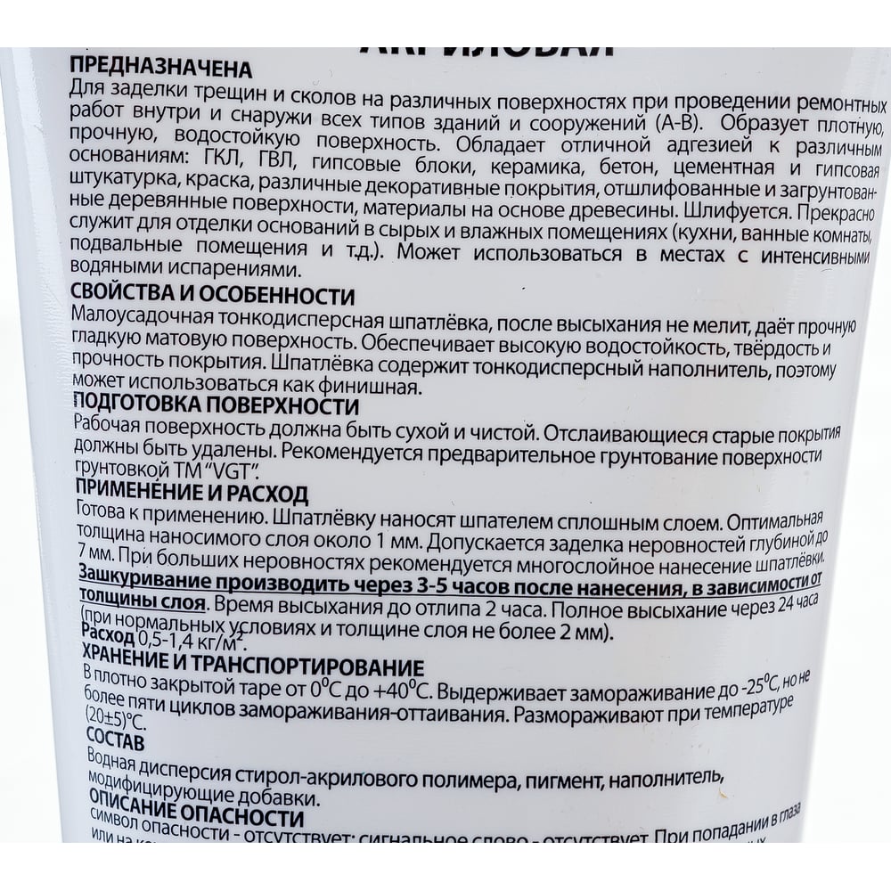 | Вид шпатлевки | финишная |