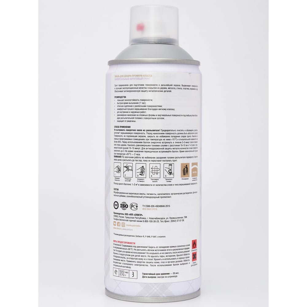 Аэрозольный акриловый грунт SIANA для мебели, дерева, металла и декора, серый SNGA002
