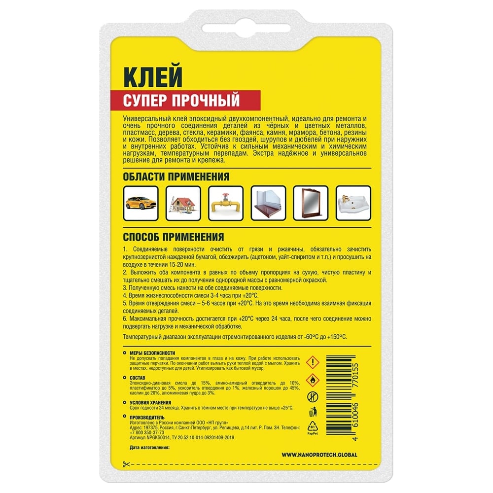 | Склеиваемые материалы | детали из чёрных и цветных металлов, пластмасс, дерева, стекла, керамики, фаянса, камня, мрамора, бетона, резины и кожи |