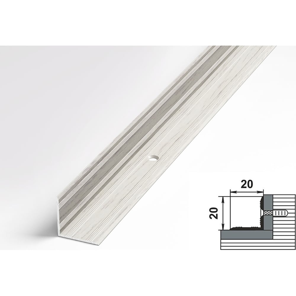 Порог внутренний угловой алюминиевый декоративный (20х20 мм, 1,35 м, Дуб арктик) ЛУКА УТ000006675