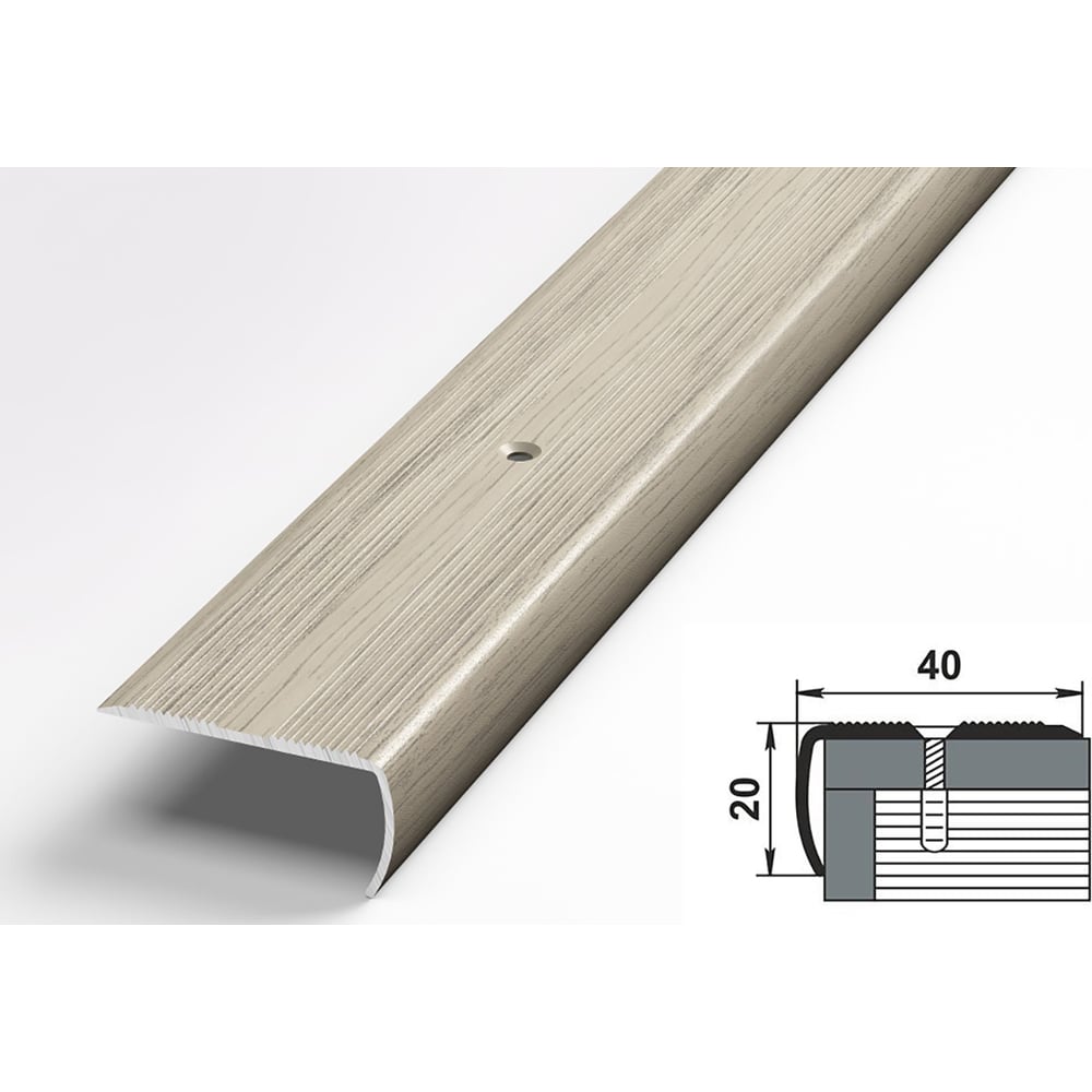 Порог угловой алюминиевый декоративный (40х20 мм, 1,8 м, Клен беленый) ЛУКА УТ000004705