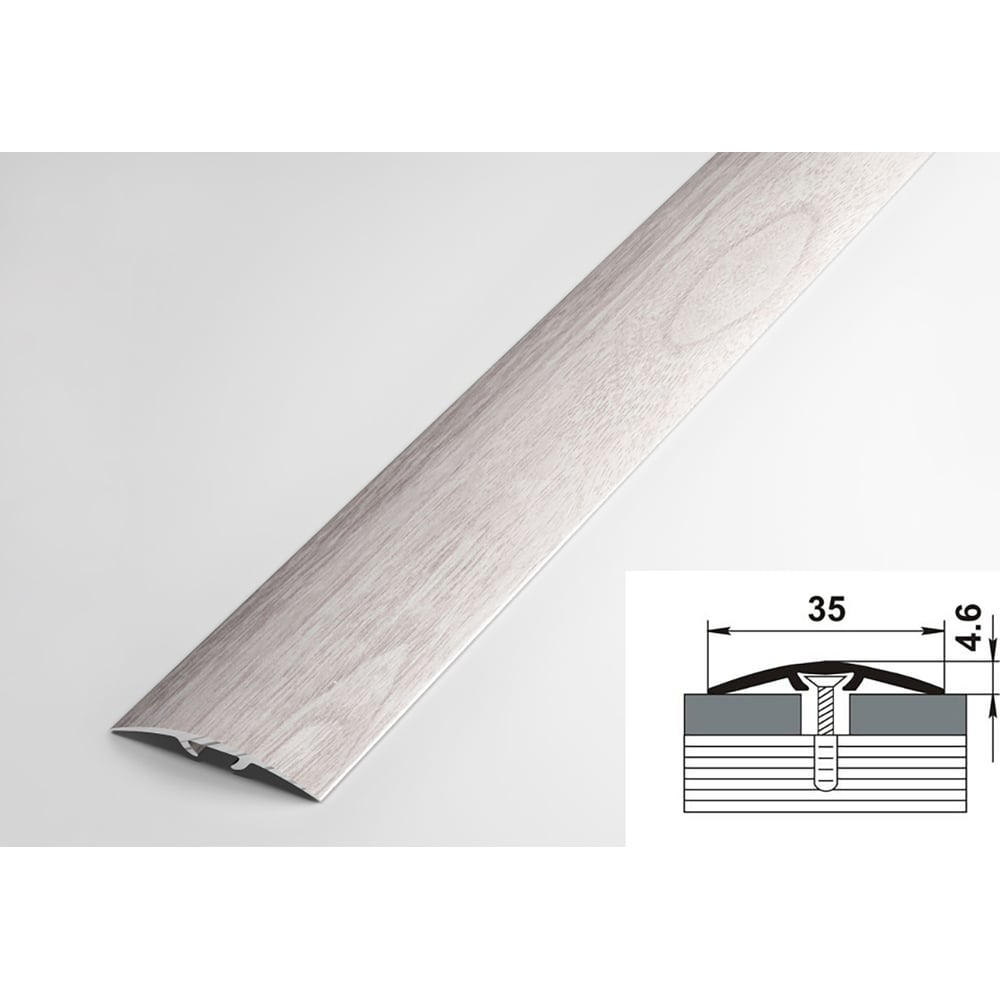 Порог прямой скрытый алюминиевый декоративный (35 мм, 1,8 м, Ясень белый) ЛУКА УТ000023164