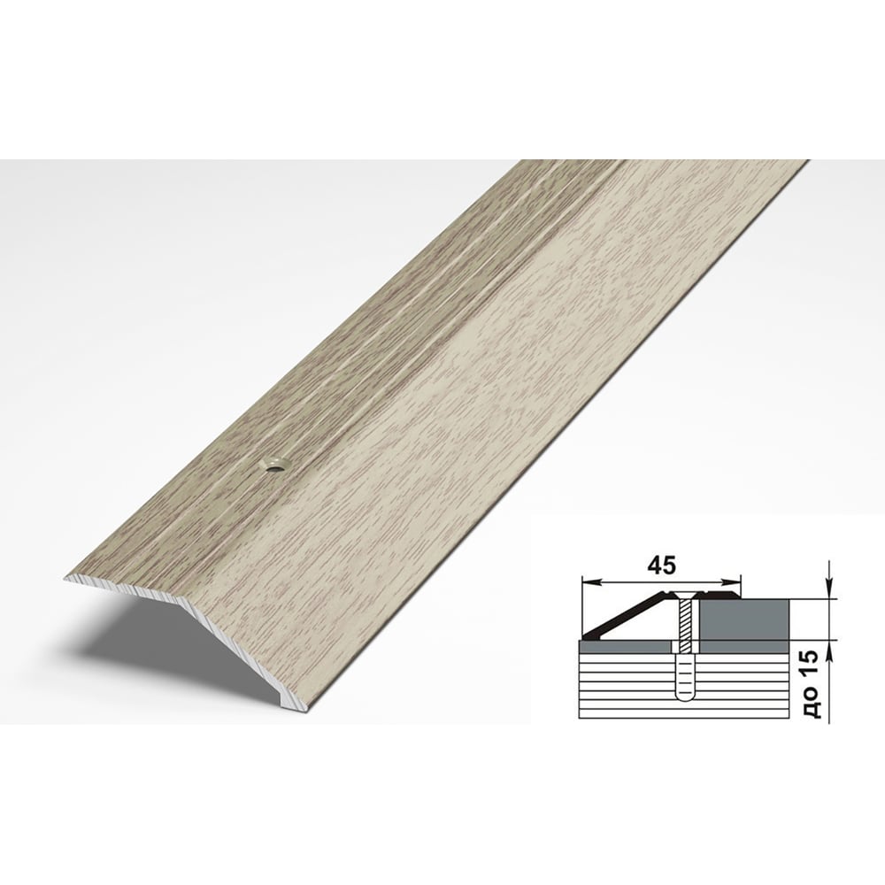 Порог разноуровневый алюминиевый декоративный (45 мм, 1,8 м, Дуб беленый) ЛУКА 00000003063
