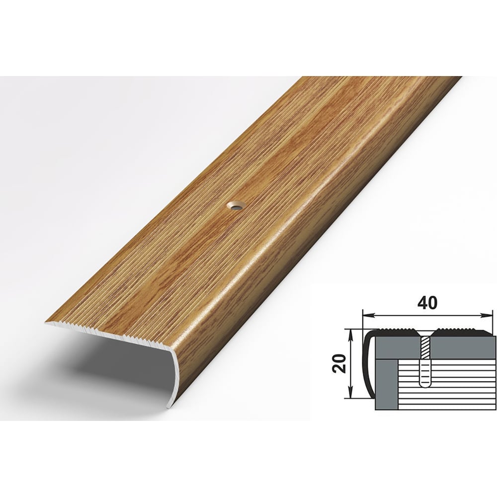 Порог угловой алюминиевый декоративный (40х20 мм, 1,8 м, Дуб универсальный) ЛУКА УТ000000665