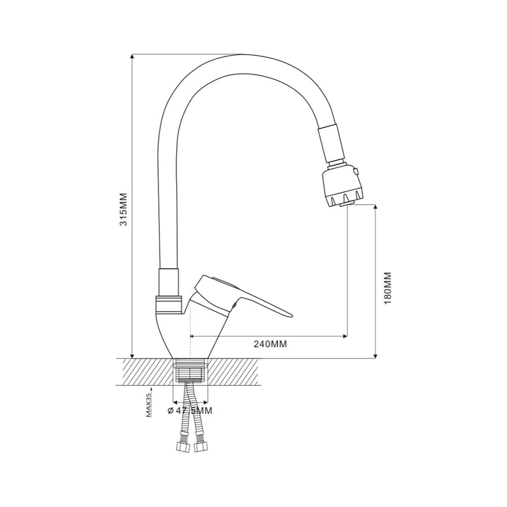Смеситель для кухни Ekko гибкий излив, с гайкой, черный E4105+E65
