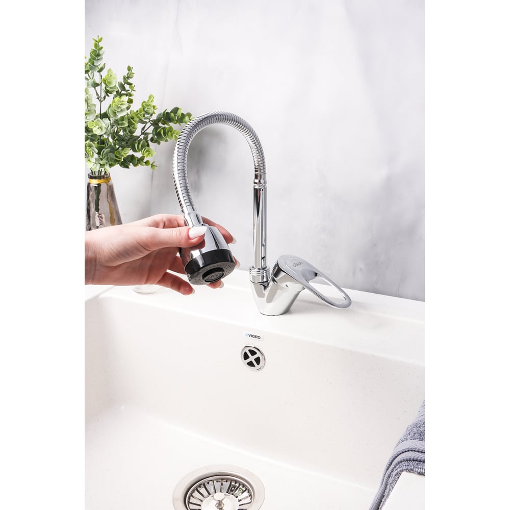 Смеситель для кухни Ekko гибкий излив, с гайкой E4336