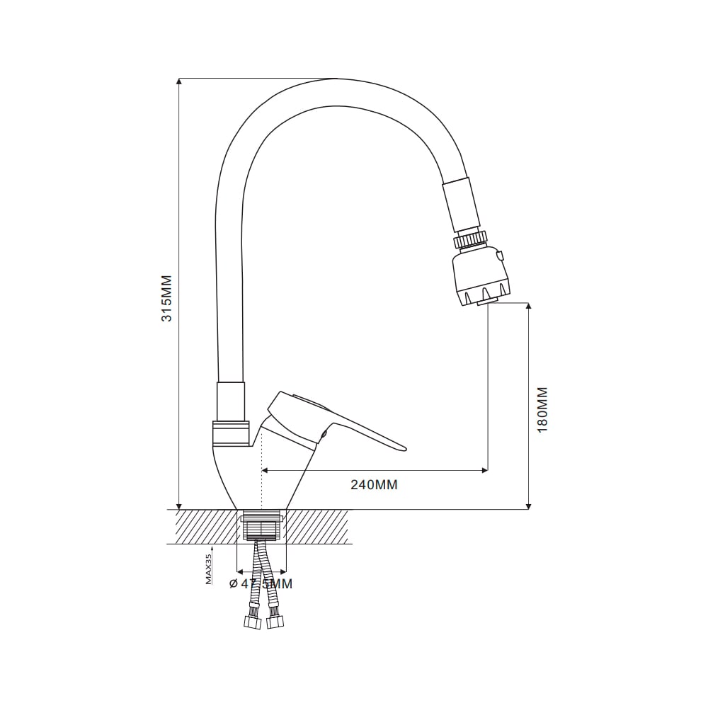 | Высота смесителя | 315 мм |