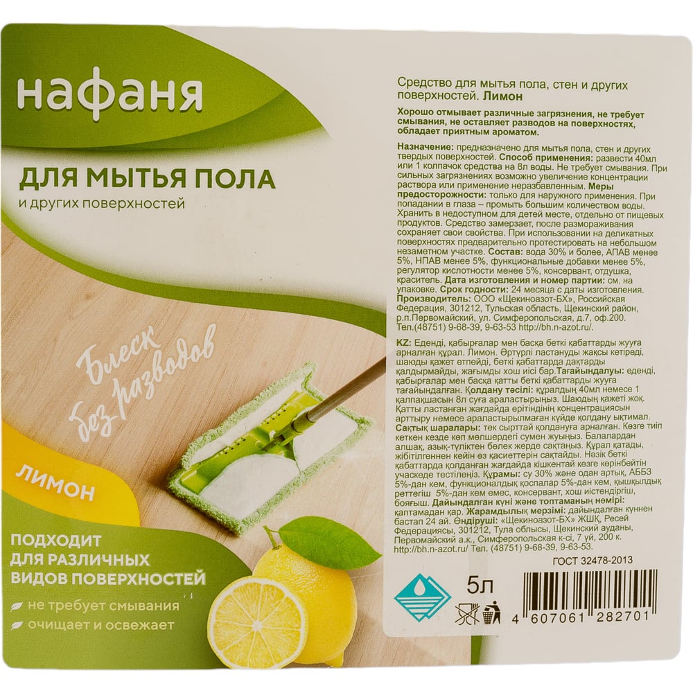 Средство для мытья полов Нафаня Универсал Лимон 5 л, канистра НМП- 05К