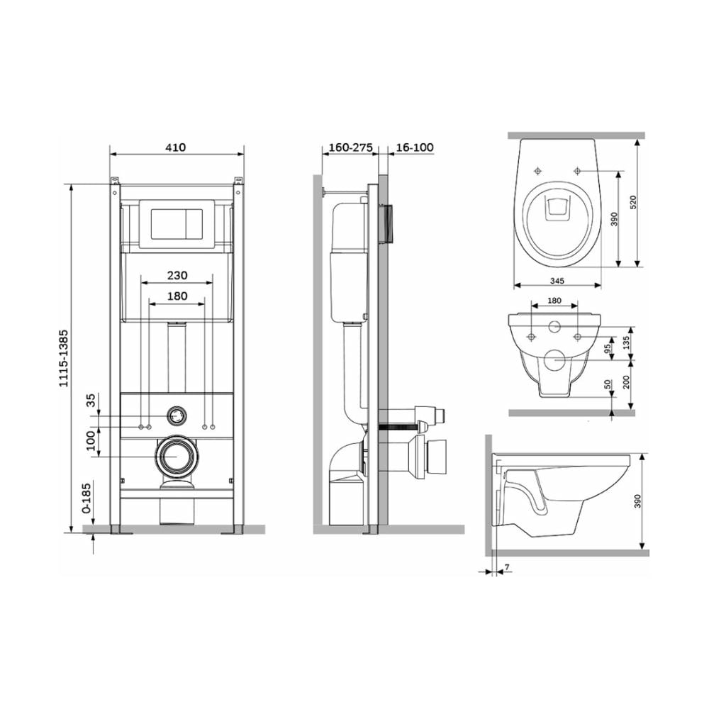 | Ширина унитаза | 345 мм |