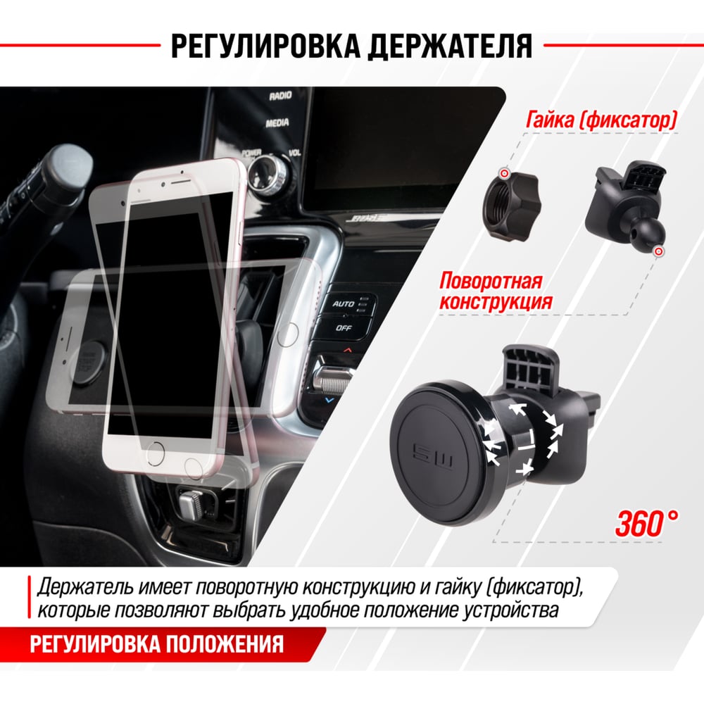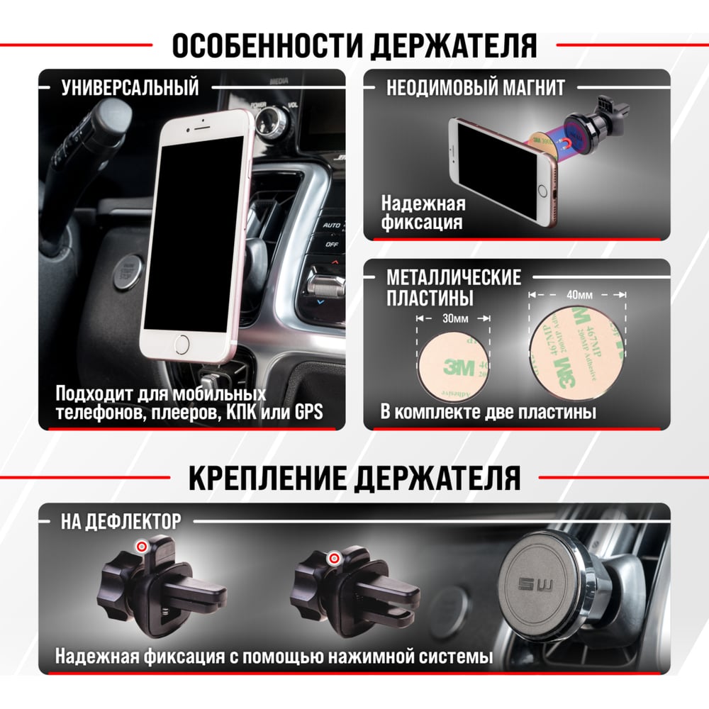 Магнитный держатель телефона на дефлектор SKYWAY S00303011