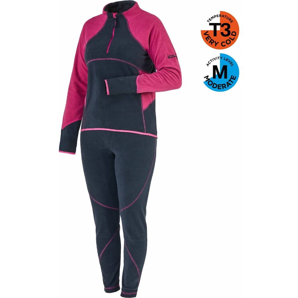 Цвет синий/розовый Тип костюм-двойка (кофта + кальсоны) Вес нетто 0.56 кг Размер (буквенная система маркировки) S Состав ткани 100% полиэстер Тип основной ткани синтетическая Пол женский Рост 162-164 см Название основной ткани NORfleece Micro Начес нет Возрастная категория взрослые