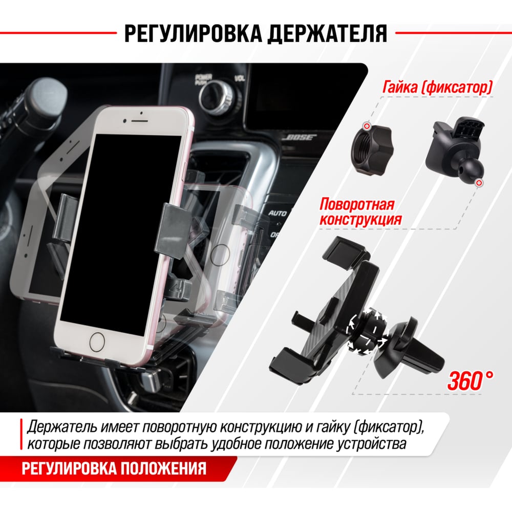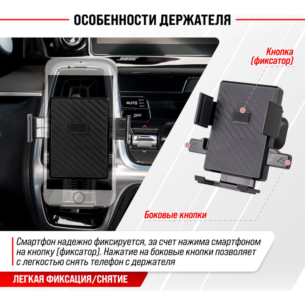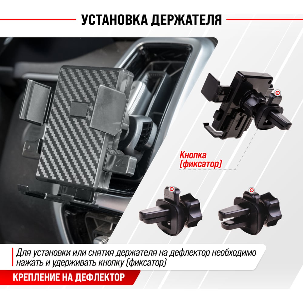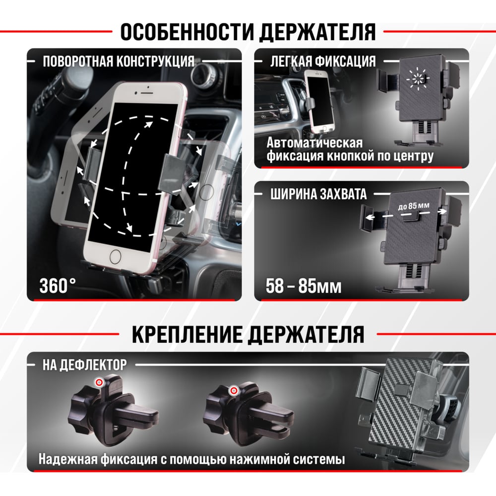 Держатель телефона SKYWAY на дефлектор (шир.58-85мм) 360 черный карбон S00301042