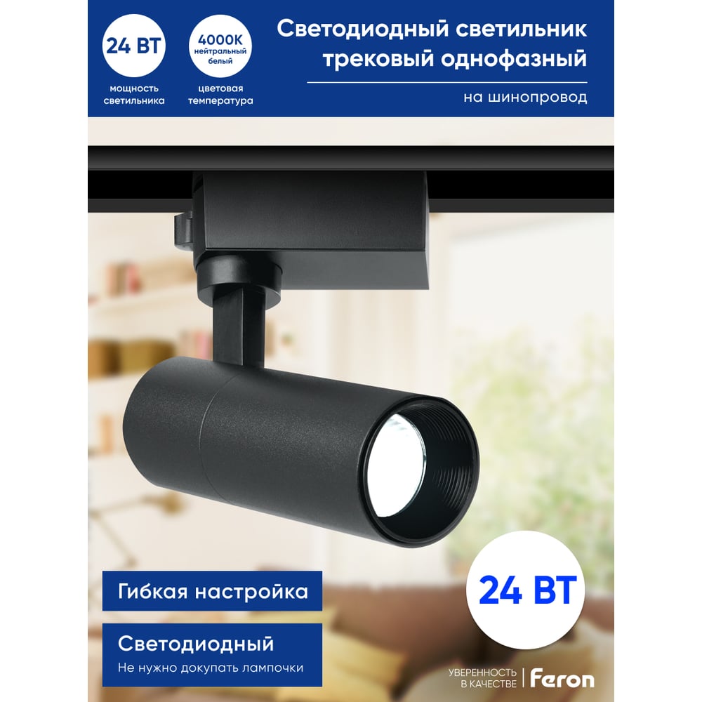 Трековый однофазный светильник FERON на шинопровод, AL140, 24W, 4000К белый, 2160Lm, черный, 41612