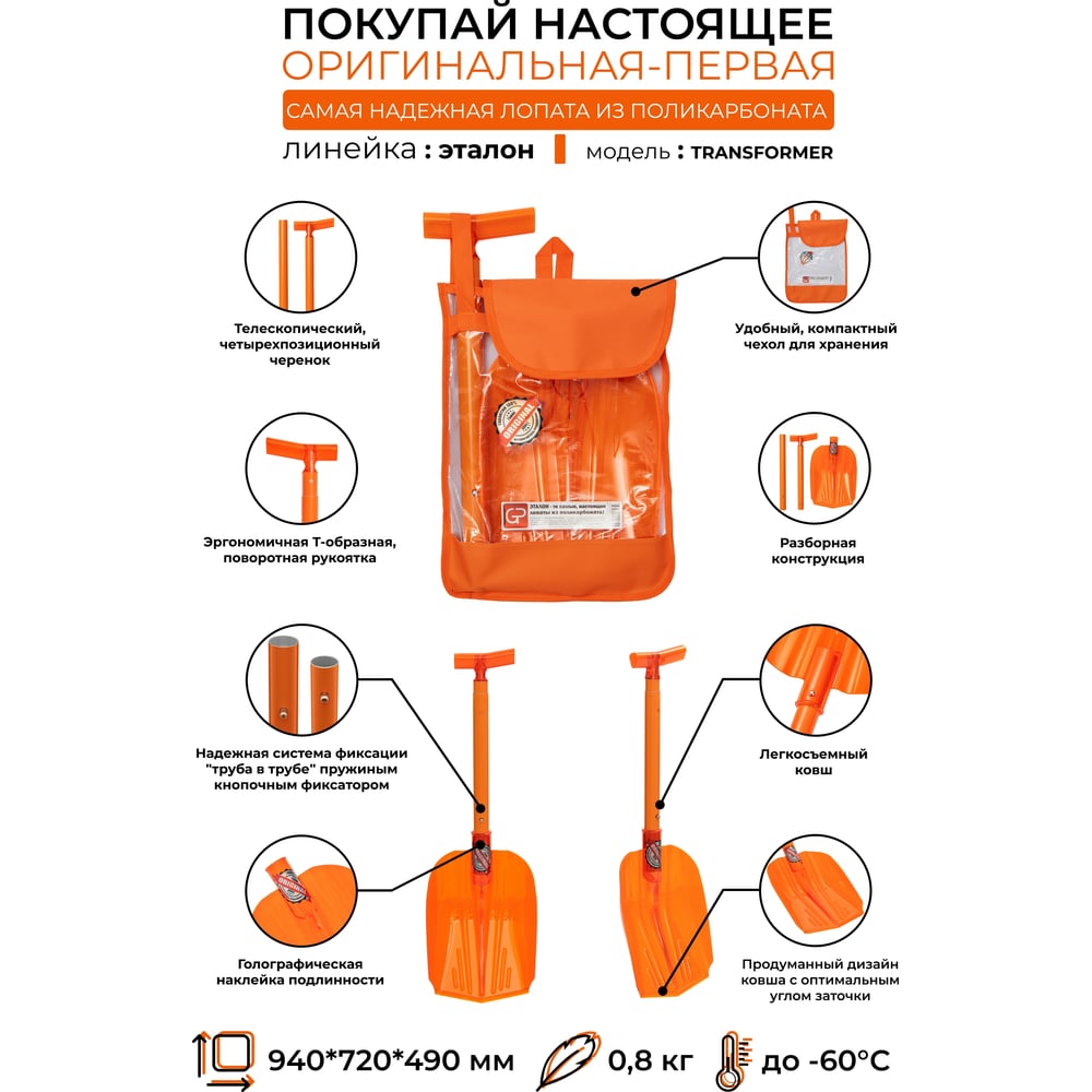 Снеговая лопата из поликарбоната ГАММА-ПЛАСТ ЭТАЛОН TRANSFORMER в чехле для хранения GPLP002