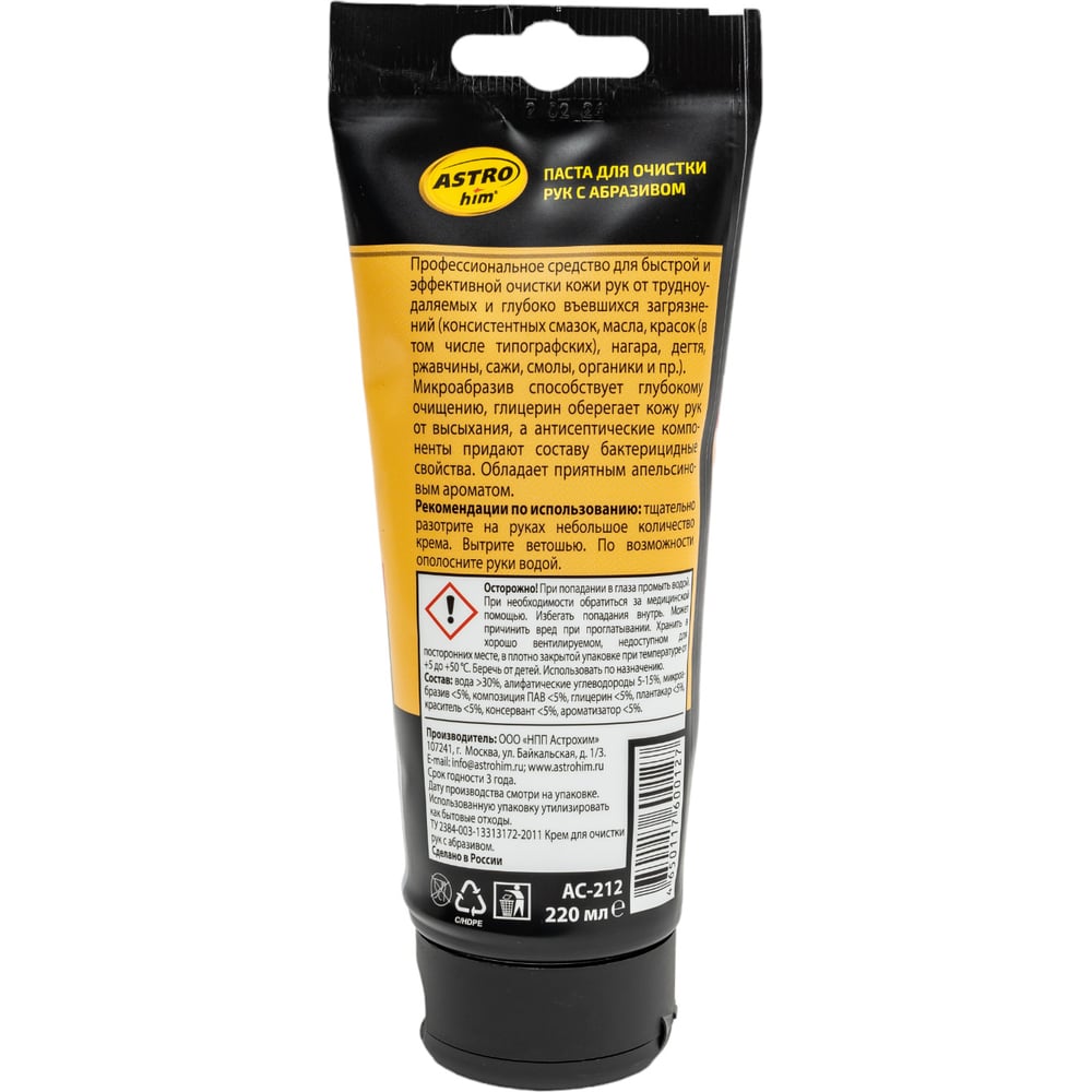 Паста для очистки рук с абразивом ASTROhim Ас-212, 220 мл 57000