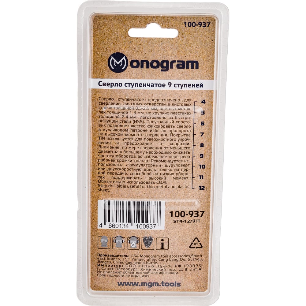 Ступенчатое сверло по металлу MONOGRAM Basis 100-937