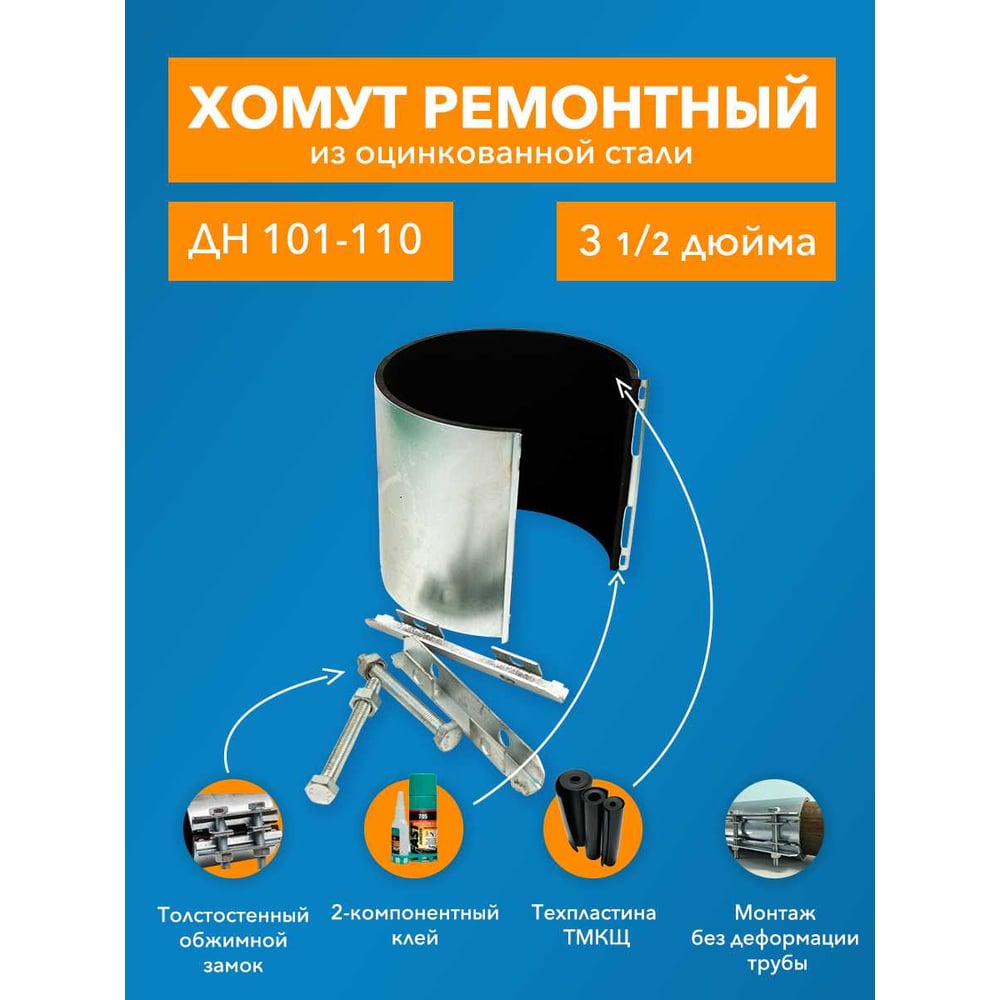 Ремонтный хомут ДТРД оцинк. краб 3-1/2" Дн 101-110, шир. 150 17009