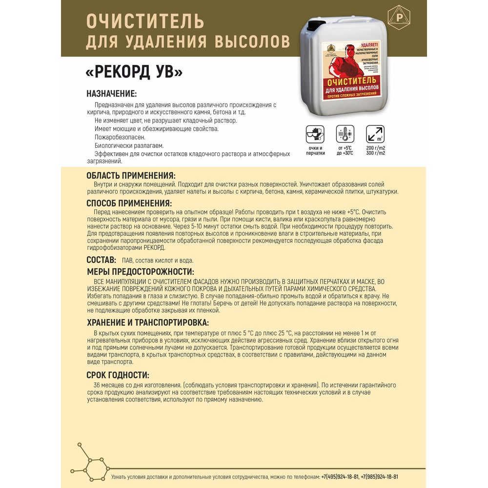 Очиститель для удаления высолов РЕКОРД 10 л УВ03