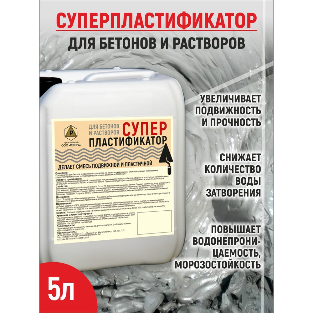 Суперпластификатор для бетонов и растворов РЕКОРД 5 л СПР1