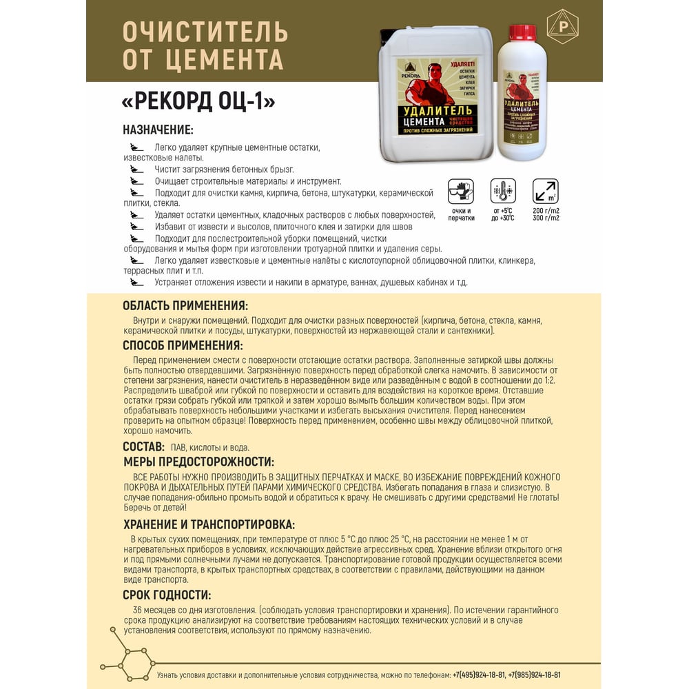 Очиститель от цемента РЕКОРД ОЦ02