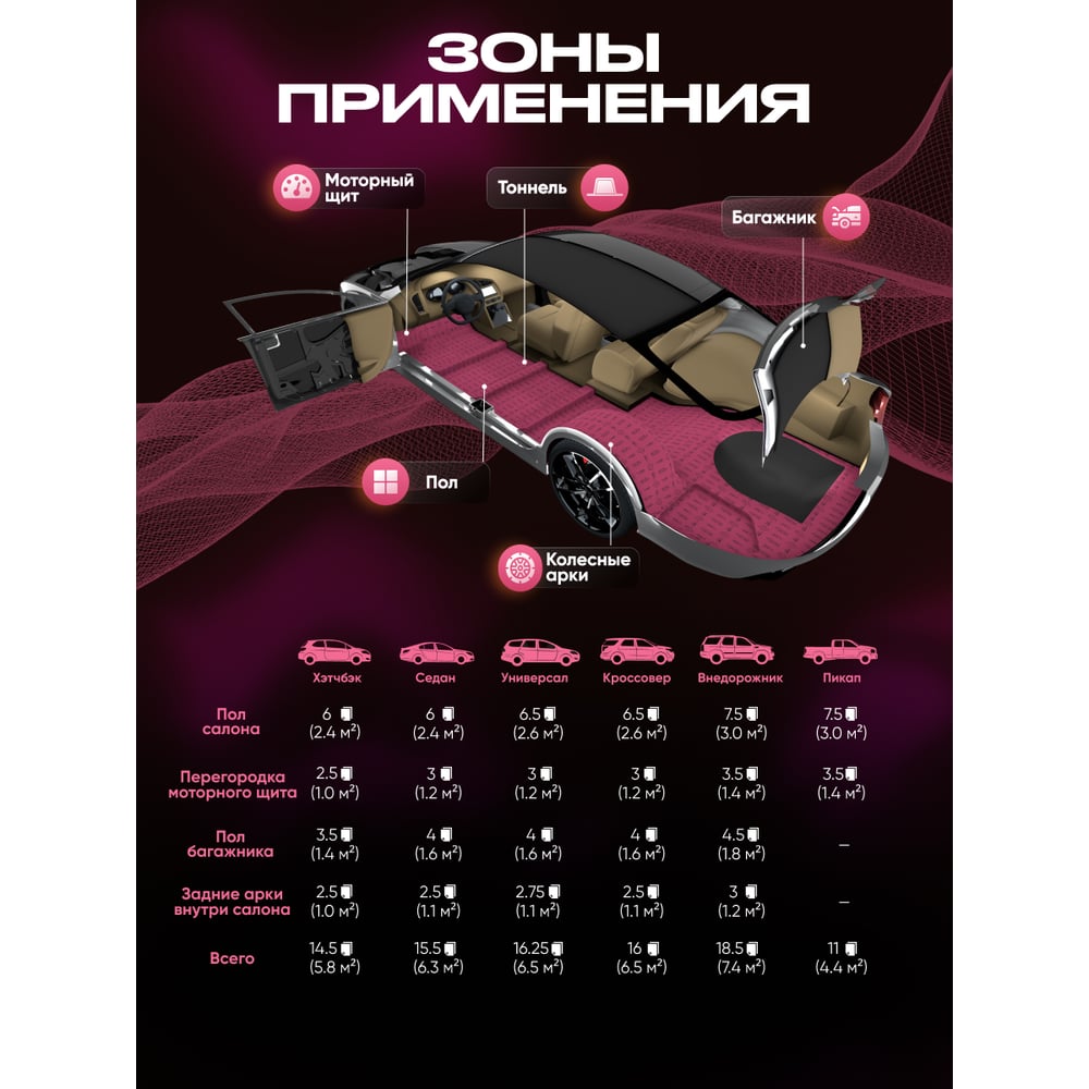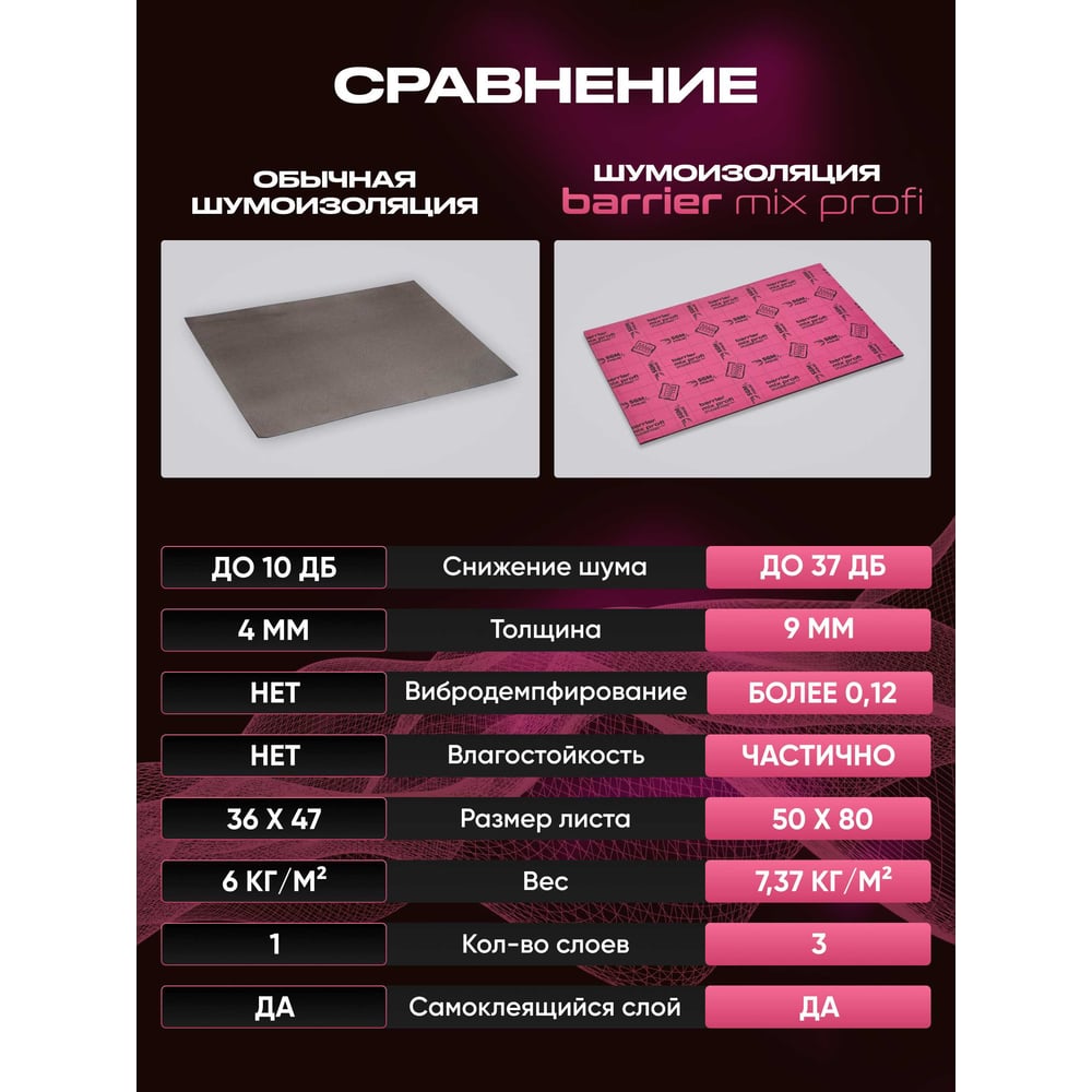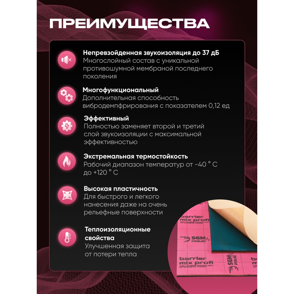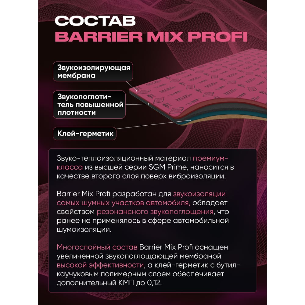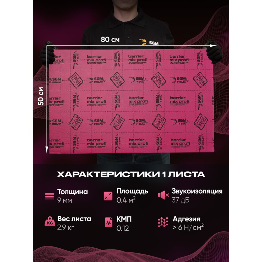 Шумоизоляция SGM Premium Barrier Mix Profi Prime (большие листы 0.5х0.8 м/ 9 мм)/ упаковка 4 листа/ комплект звукоизоляции для авто SGM.BMP.4