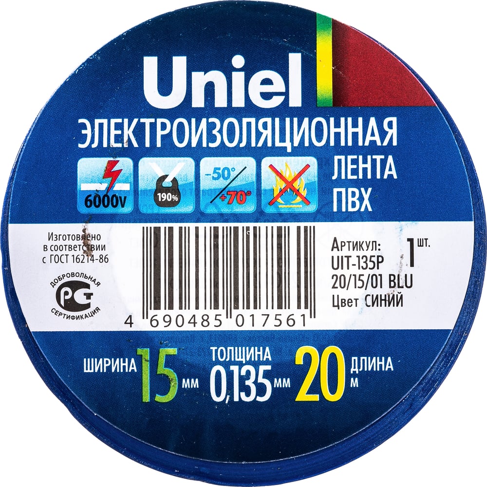 Изоляционная лента Uniel 20/15/01 BLU UIT-135P 4485