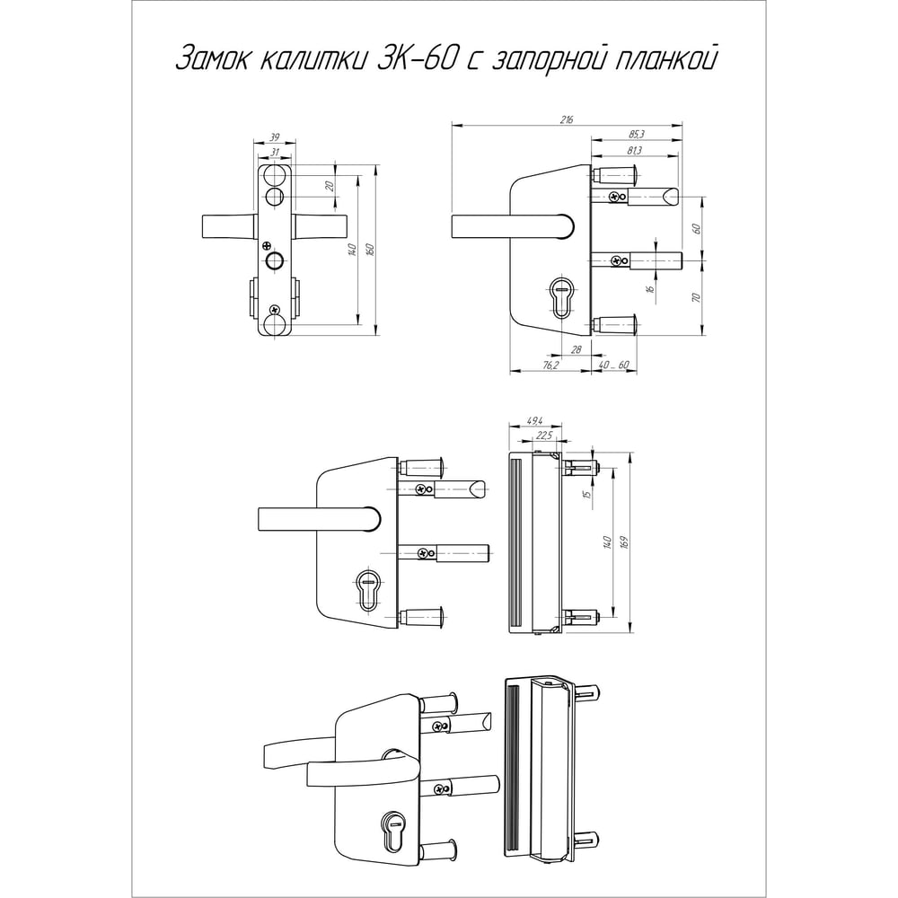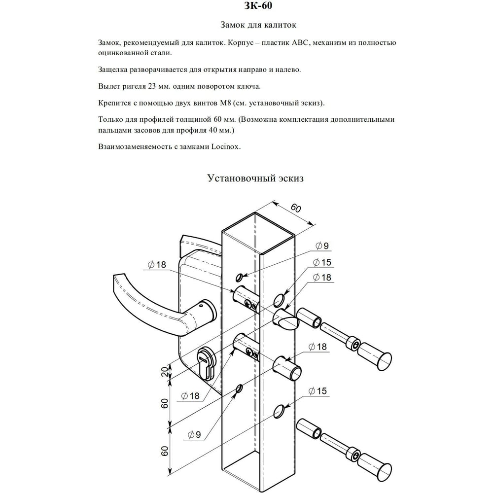 Замок врезной для калиток Симеко ЗК-60 полный комплект А1492