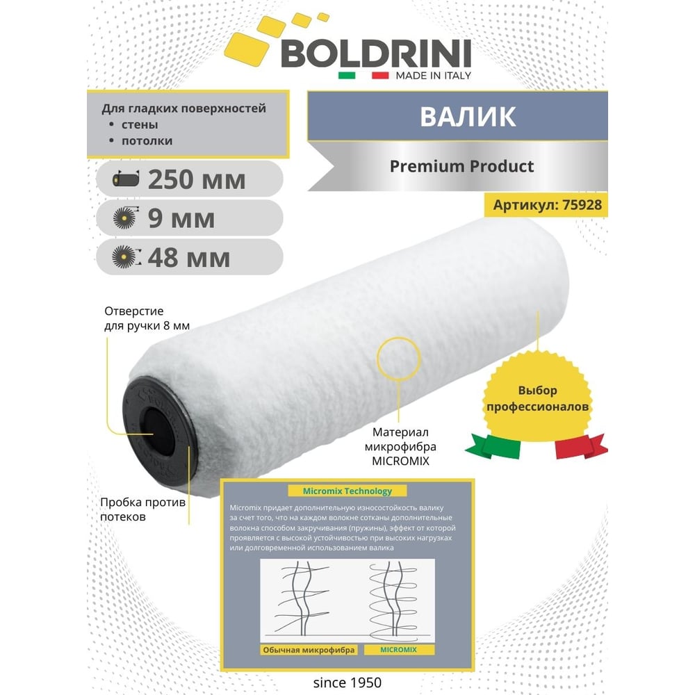 Валик Boldrini Premium микрофибра, белая, длина ворса 9 мм, 250x48 мм 75928