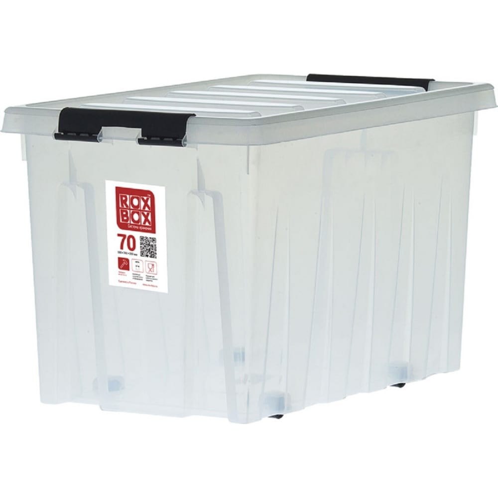 Rox Box Ящик п/п 589х396х355 мм с крышкой и клипсами, на роликах, прозрачный 24840