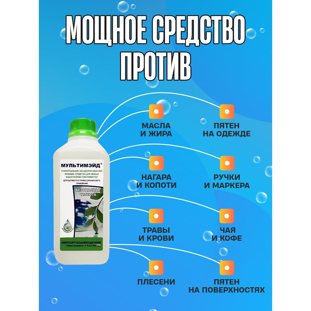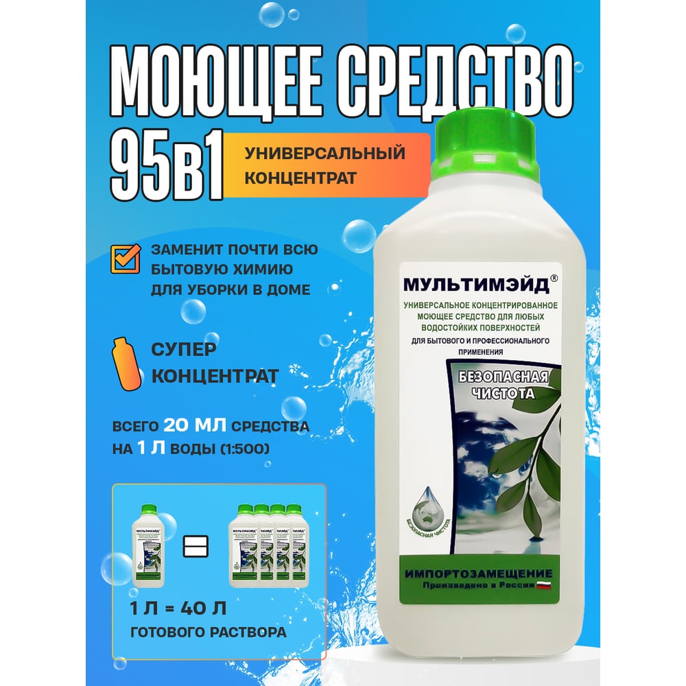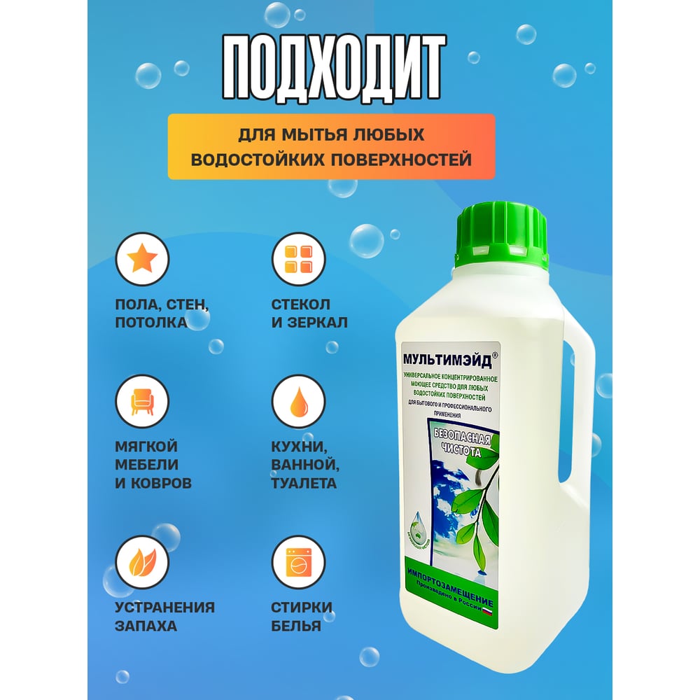 Универсальное моющее средство Мультимэйд для уборки на производстве, в офисе и дома, 1 л еврофлакон 4607002302505
