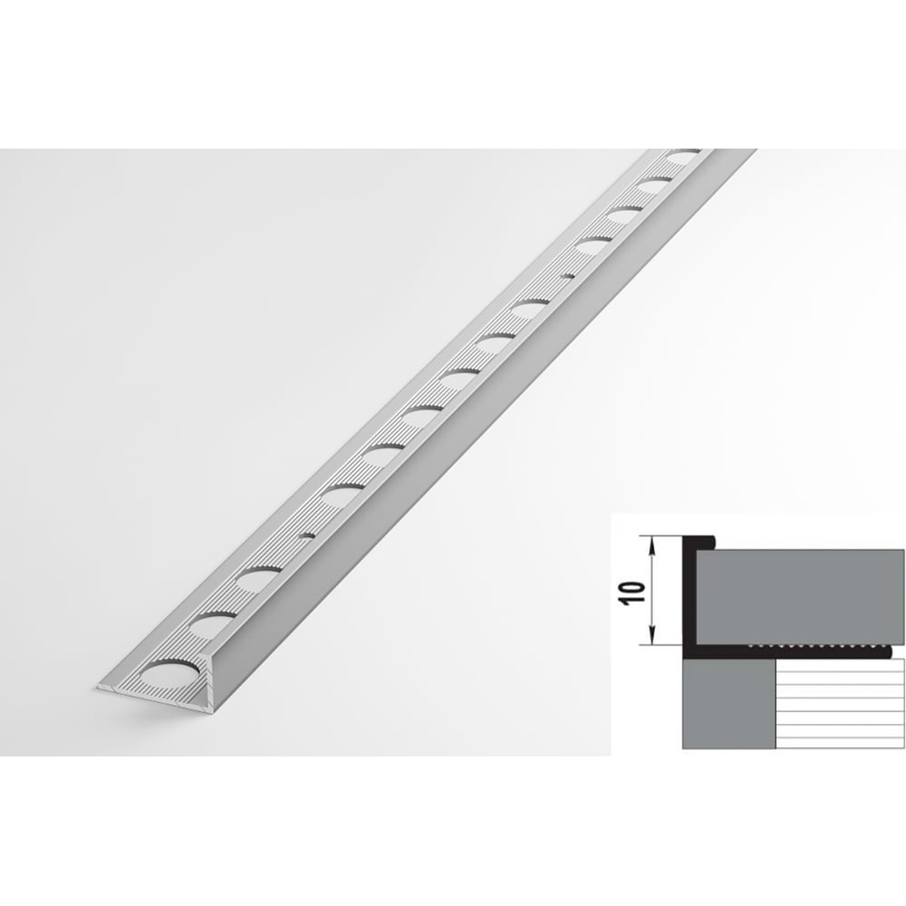 Профиль окантовочный L-образный алюминиевый ЛУКА 10 мм, 2,7 м, 5 шт, Серебро УТ000021235