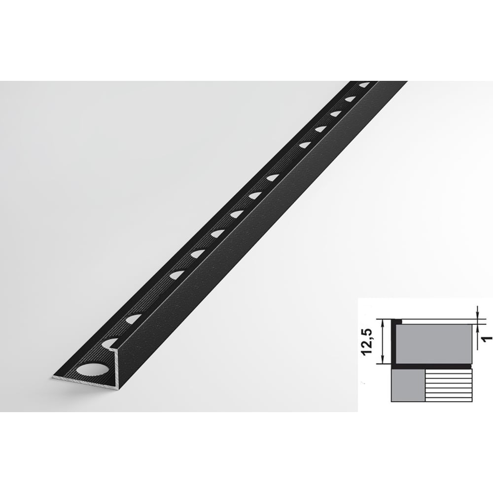 Профиль окантовочный L-образный алюминиевый ЛУКА 12,5 мм, 2,7 м, 5 шт, Черный УТ000021246