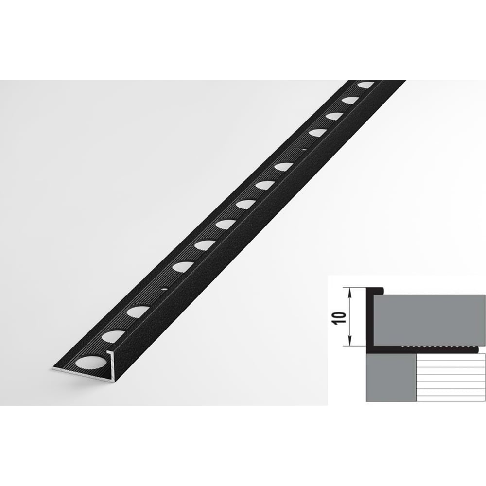 Профиль окантовочный L-образный алюминиевый ЛУКА 10 мм, 2,7 м, 5 шт, Черный УТ000021237