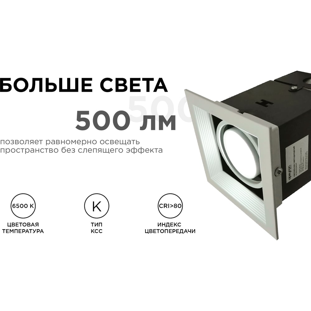 Светодиодный встраиваемый светильник Apeyron Грильято, 7Вт, 500Лм, 6500К, 120х120х140мм. 42-012