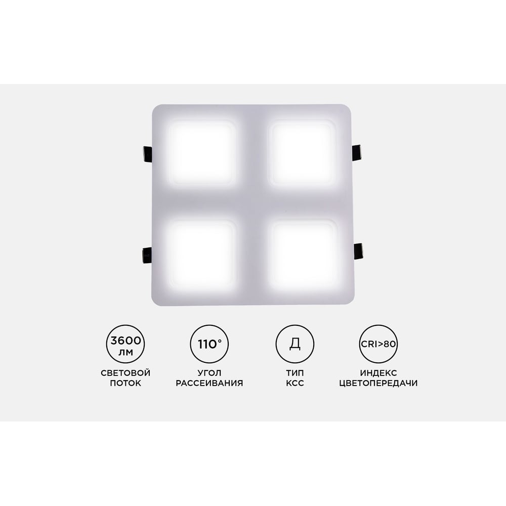Светодиодный встраиваемый светильник Apeyron Грильято, 36Вт, 3600Лм, 4000К, 240х240х27мм. 42-021