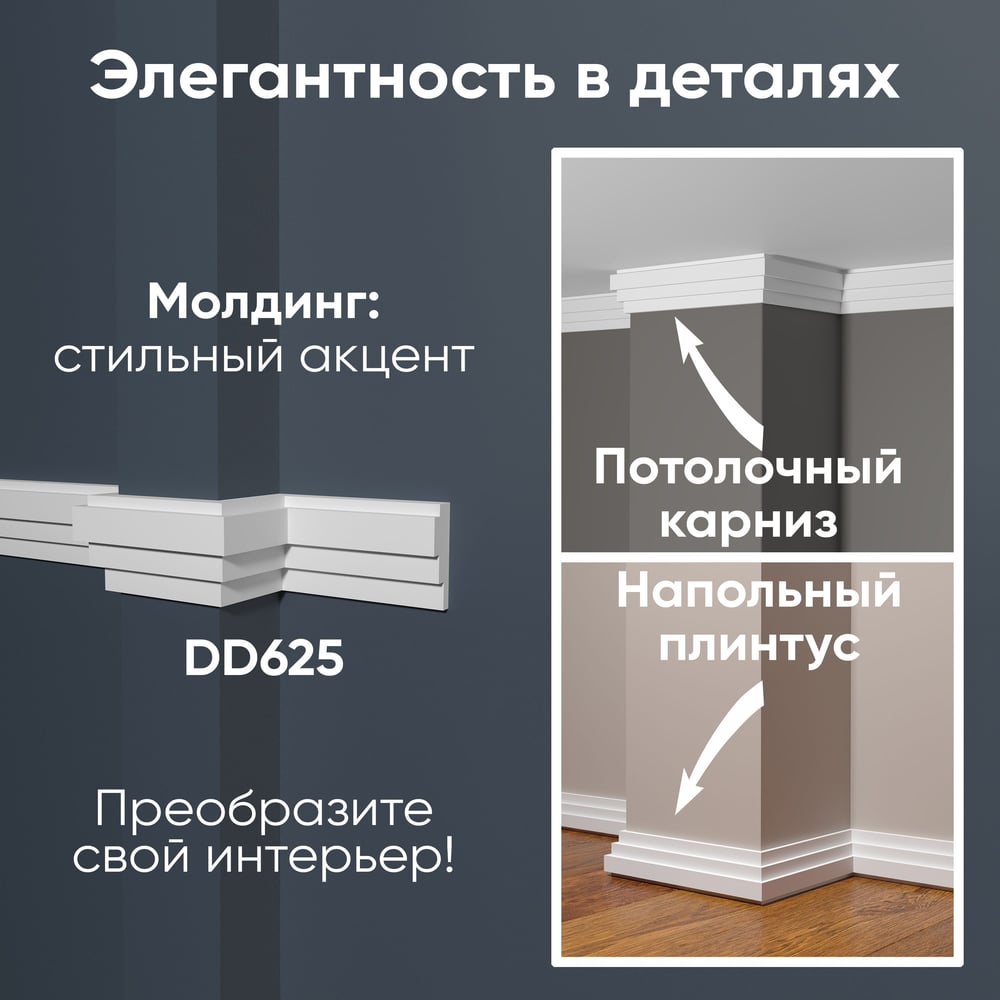 Ударопрочный влагостойкий стеновой молдинг под покраску Decor-Dizayn DD625