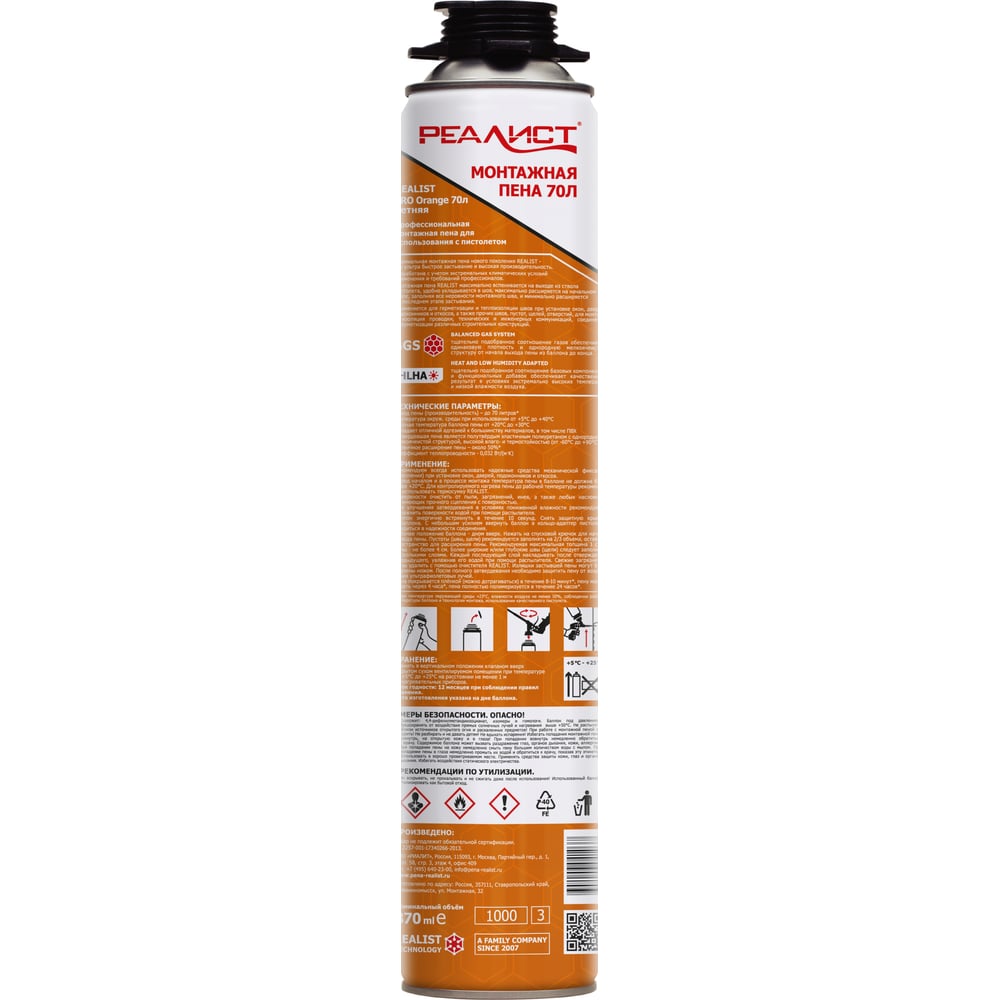 Пена монтажная REALIST PRO Orange 70 л 4602009041037