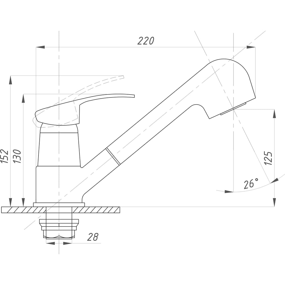 | Диаметр отверстия в раковине | 28 мм |