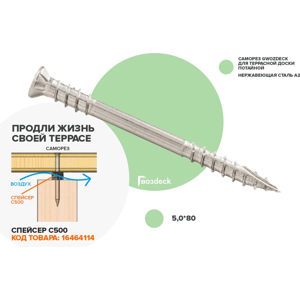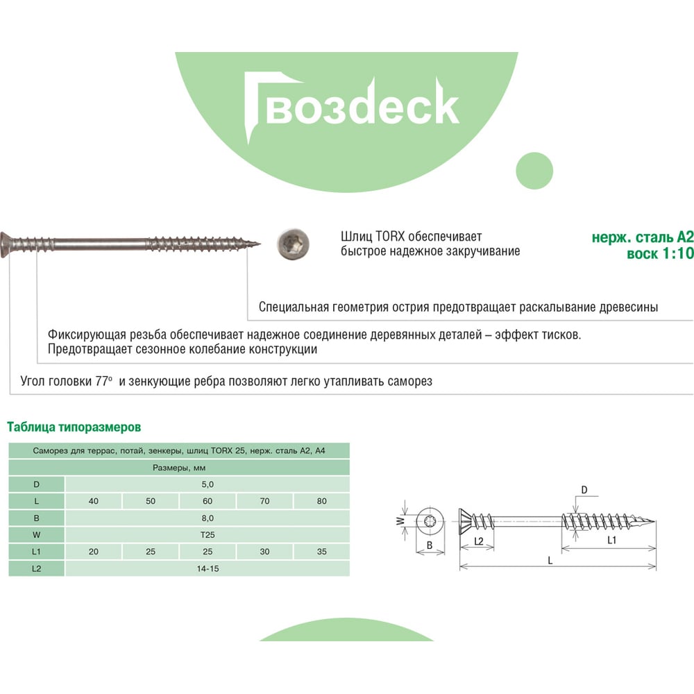 Саморез Гвозdeck ТЕРРАСА 5.0х80, нерж., T25, 100 шт. 20625080А2TXWG3