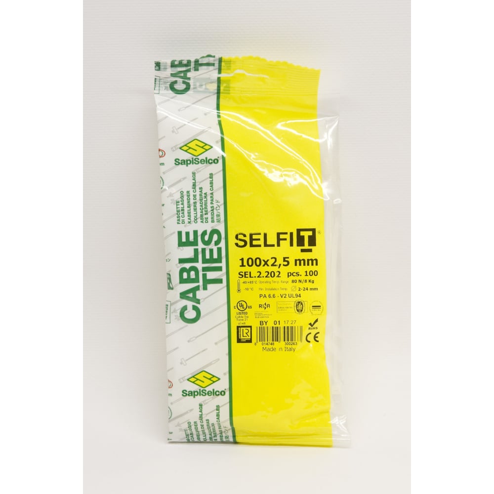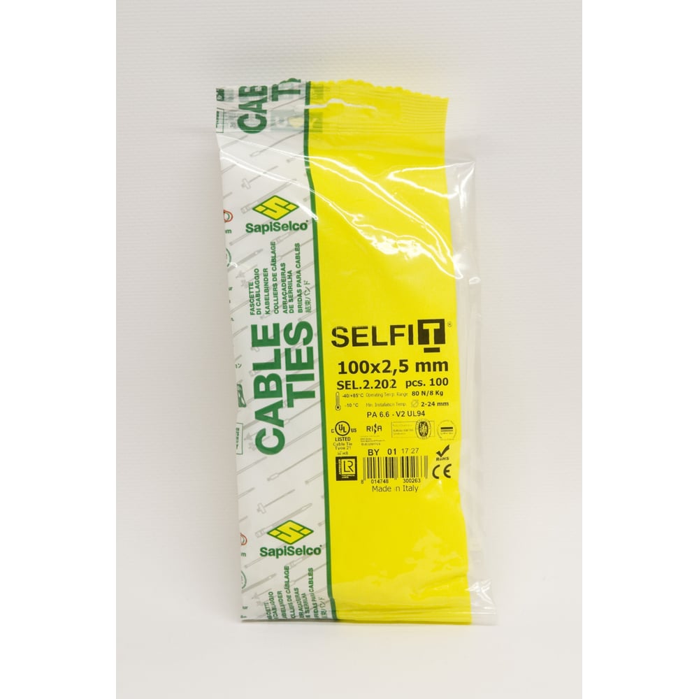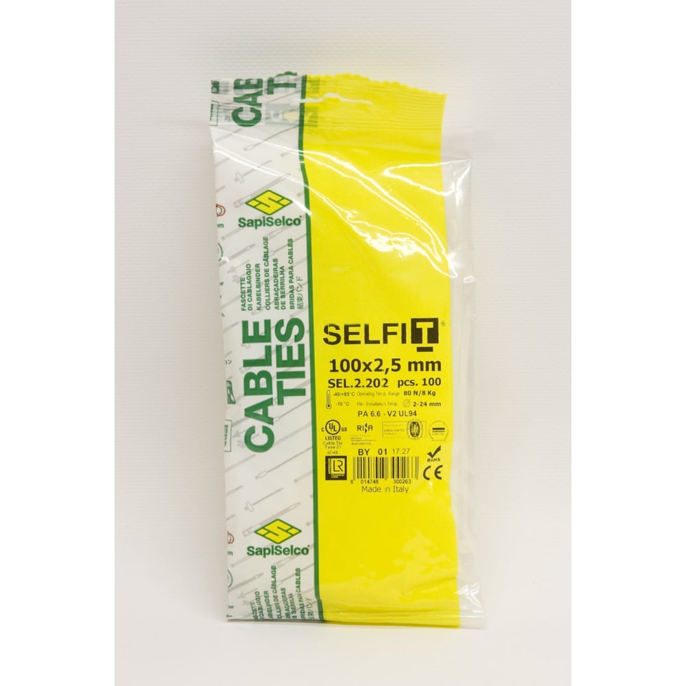 Стяжки натурального цвета SapiSelco 2.5х100 мм, полиамид 6.6, уп. 100 шт. SEL.2.202R