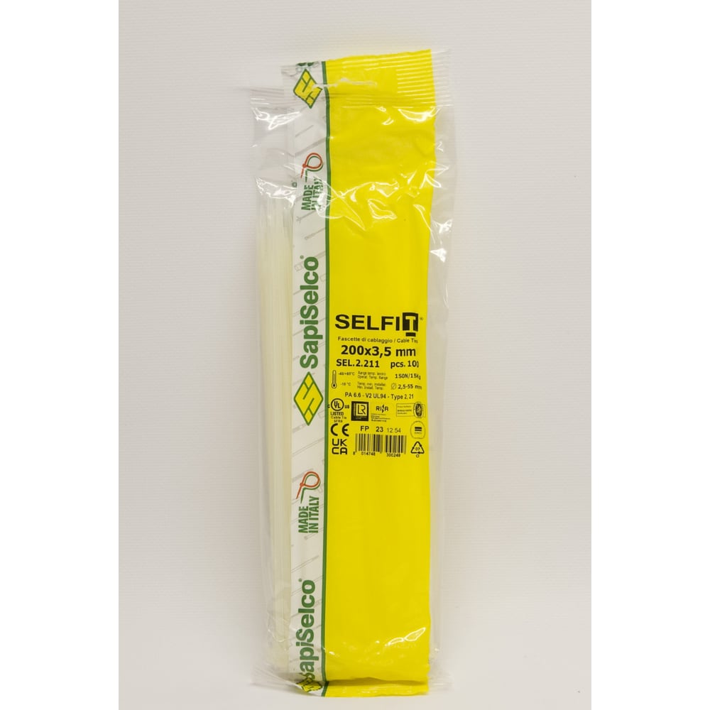 Стяжки натурального цвета SapiSelco 3.5х200 мм, полиамид 6.6, уп. 100 шт. SEL.2.211R