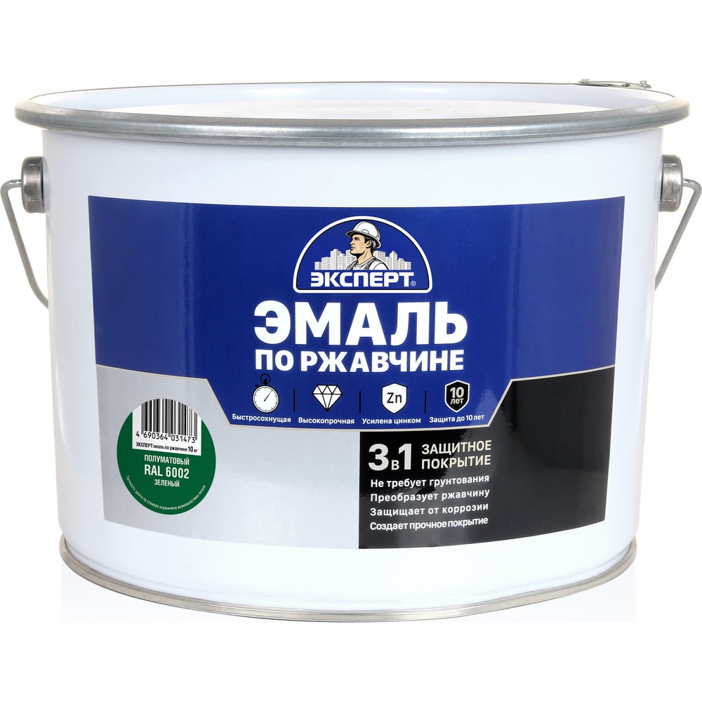 Эмаль Эксперт по ржавчине 3 в 1 полуматовая, зеленый RAL 6002, 10 кг 28332