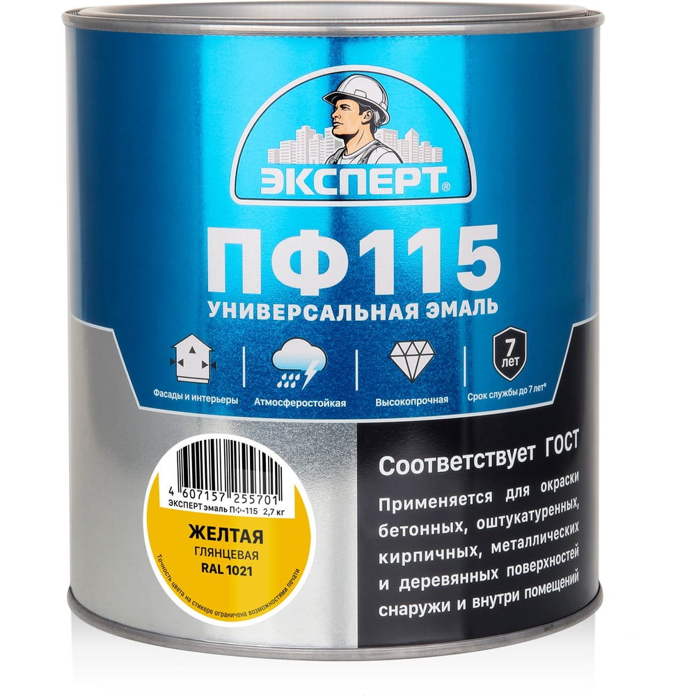 Эмаль ЭКСПЕРТ ПФ-115 глянцевая, желтая, RAL 1021 2.7 кг 34077