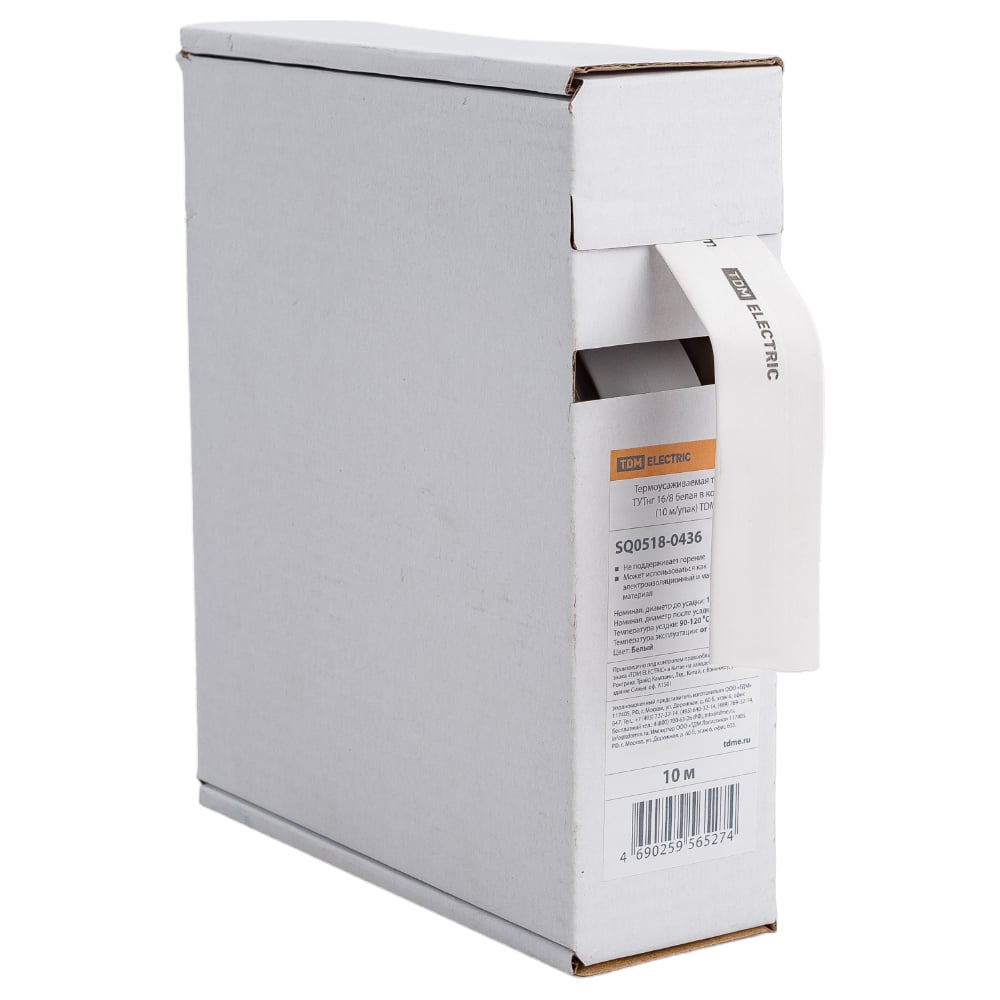 Термоусаживаемая трубка TDM ELECTRIC ТУТнг 16/8 белая в коробке (10 м/упак) SQ0518-0436