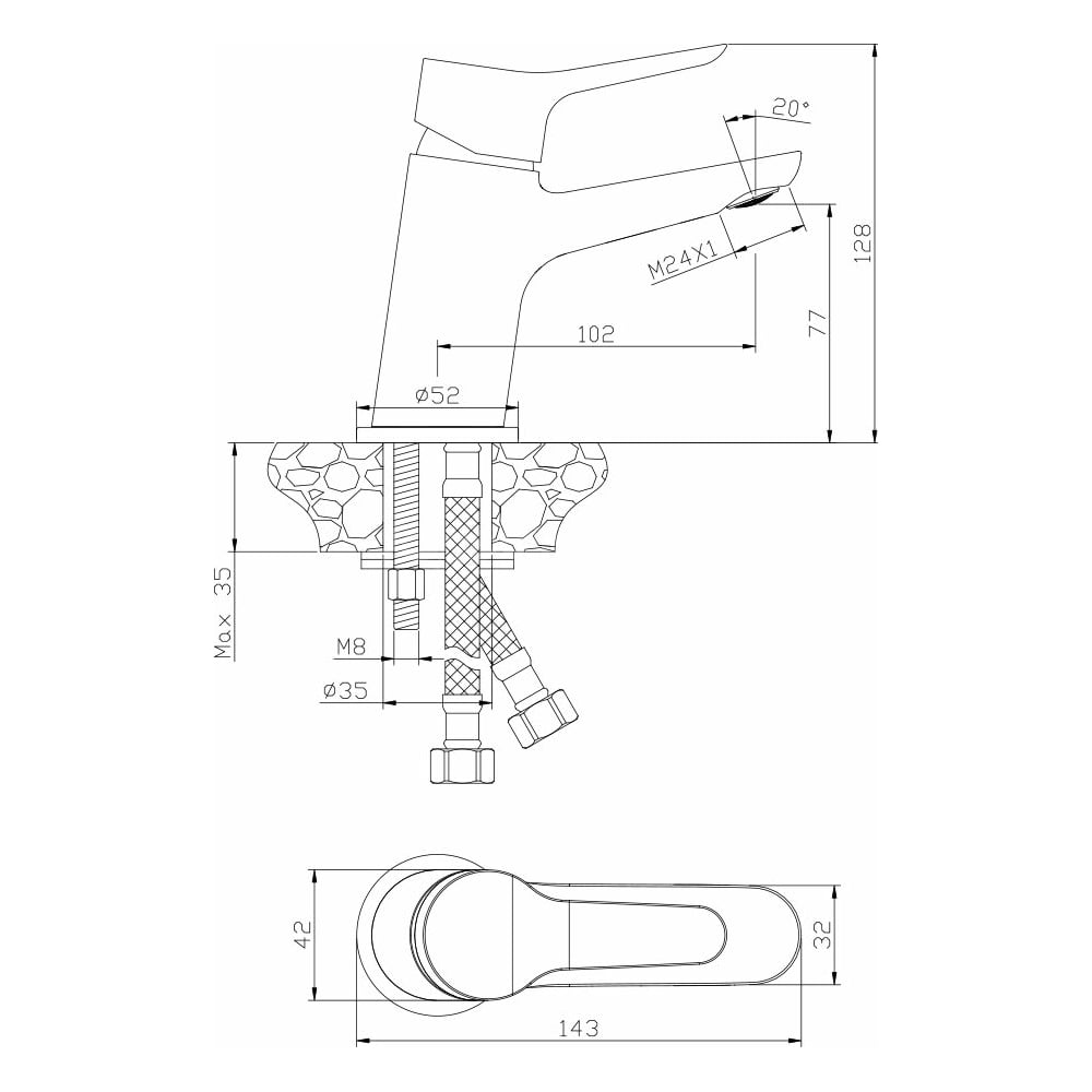 | Диаметр отверстия в раковине | 52 мм |
