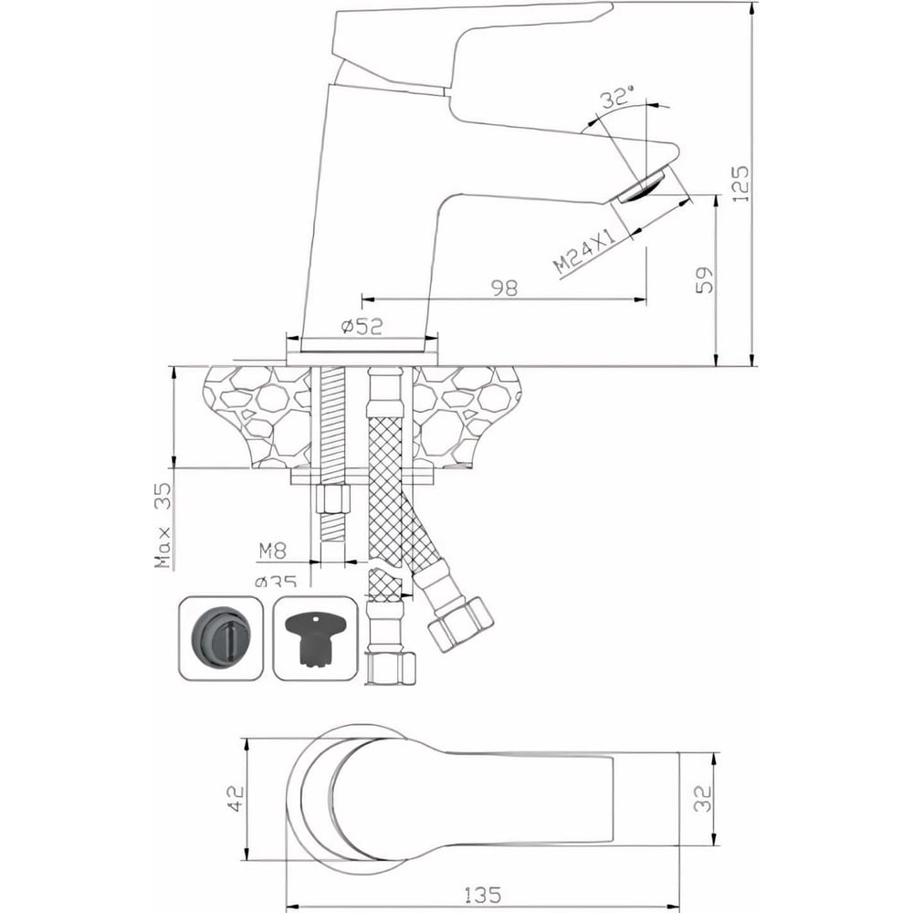 | Высота смесителя | 125 мм |