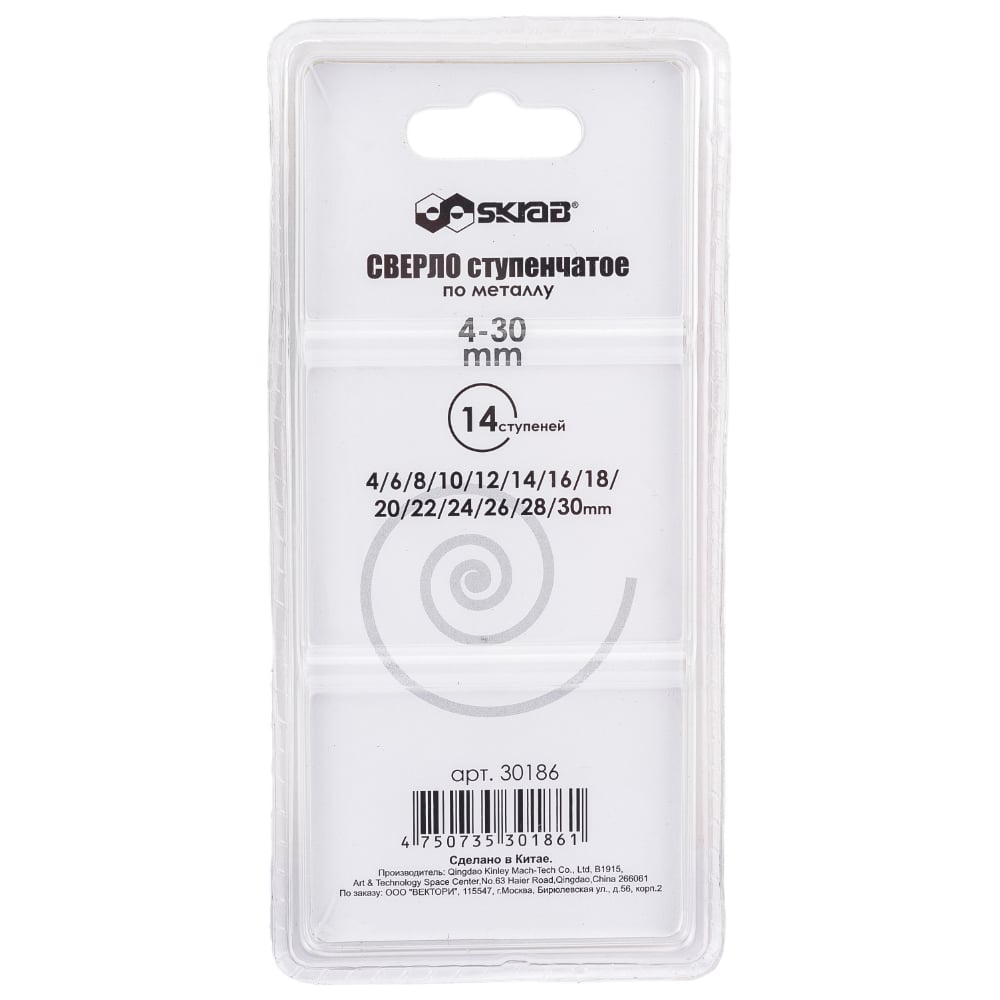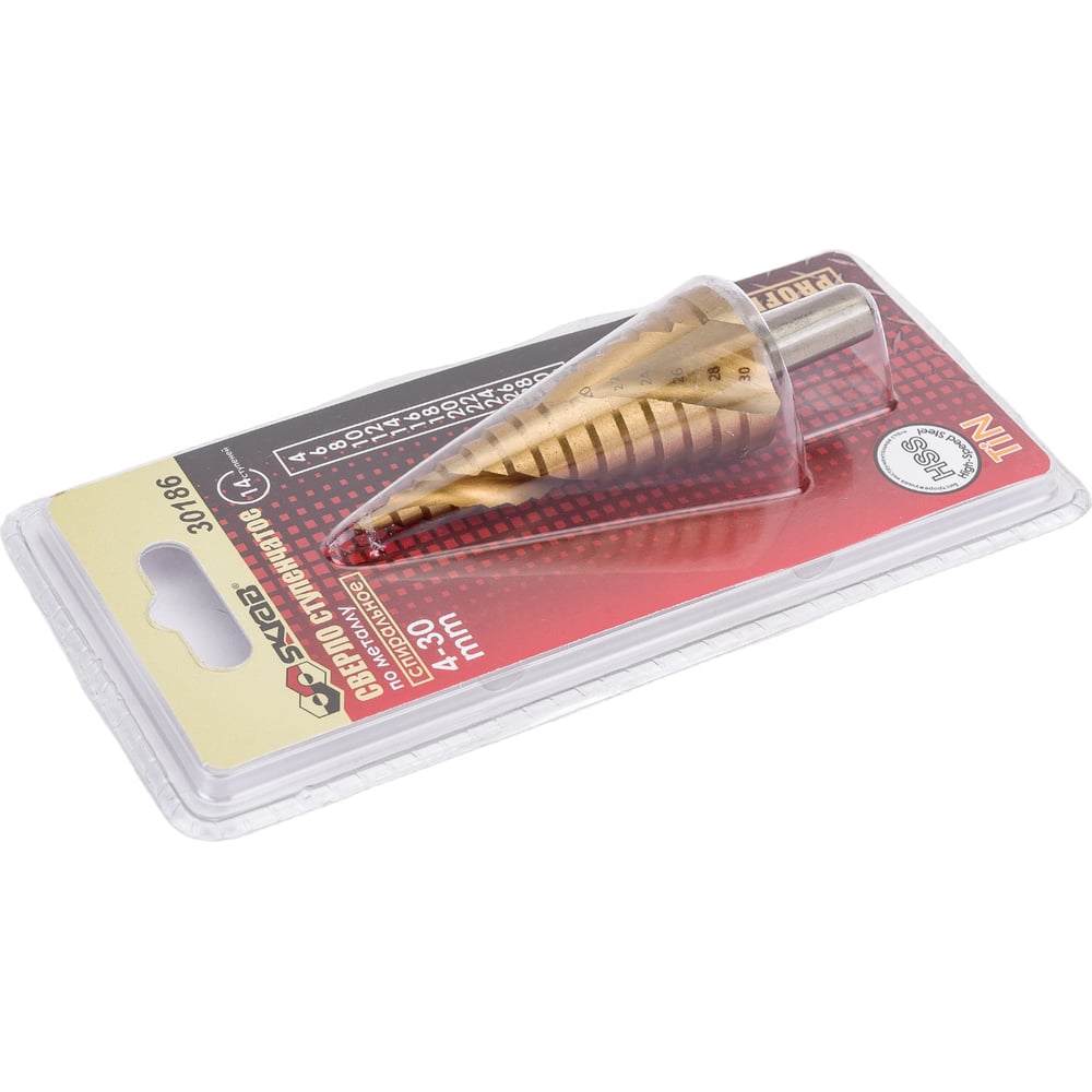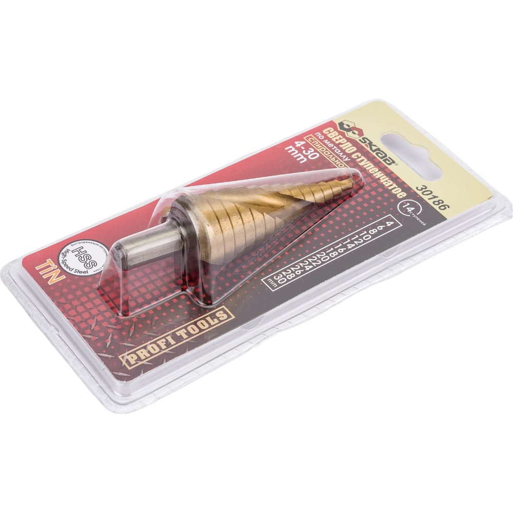 Сверло ступенчатое спиральное по металлу (4-30 мм; 14 ступеней; TiN) SKRAB 30186