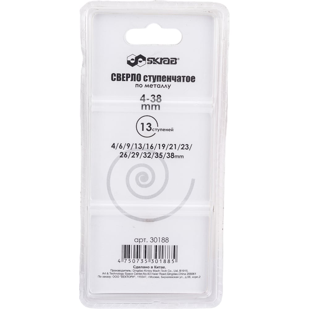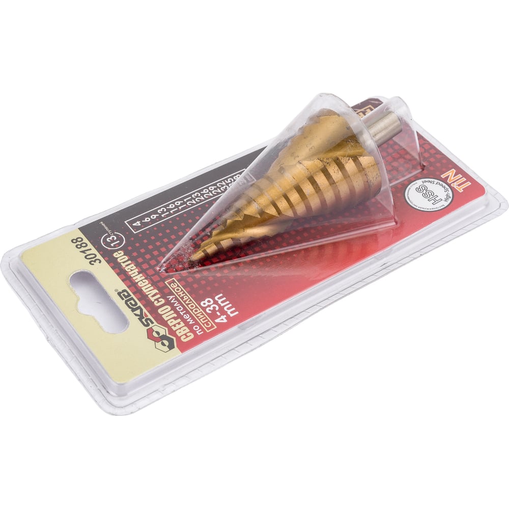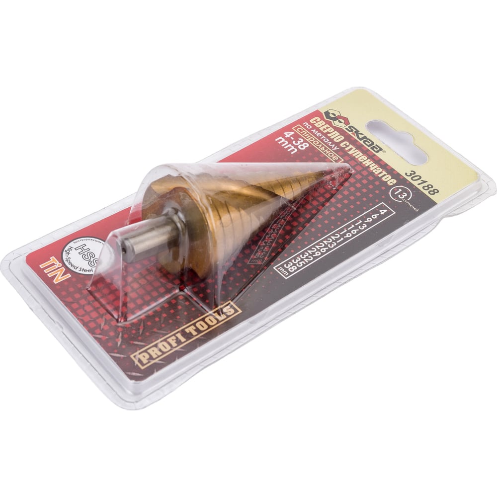 Сверло ступенчатое спиральное по металлу (4-38 мм; 13 ступеней; TiN) SKRAB 30188